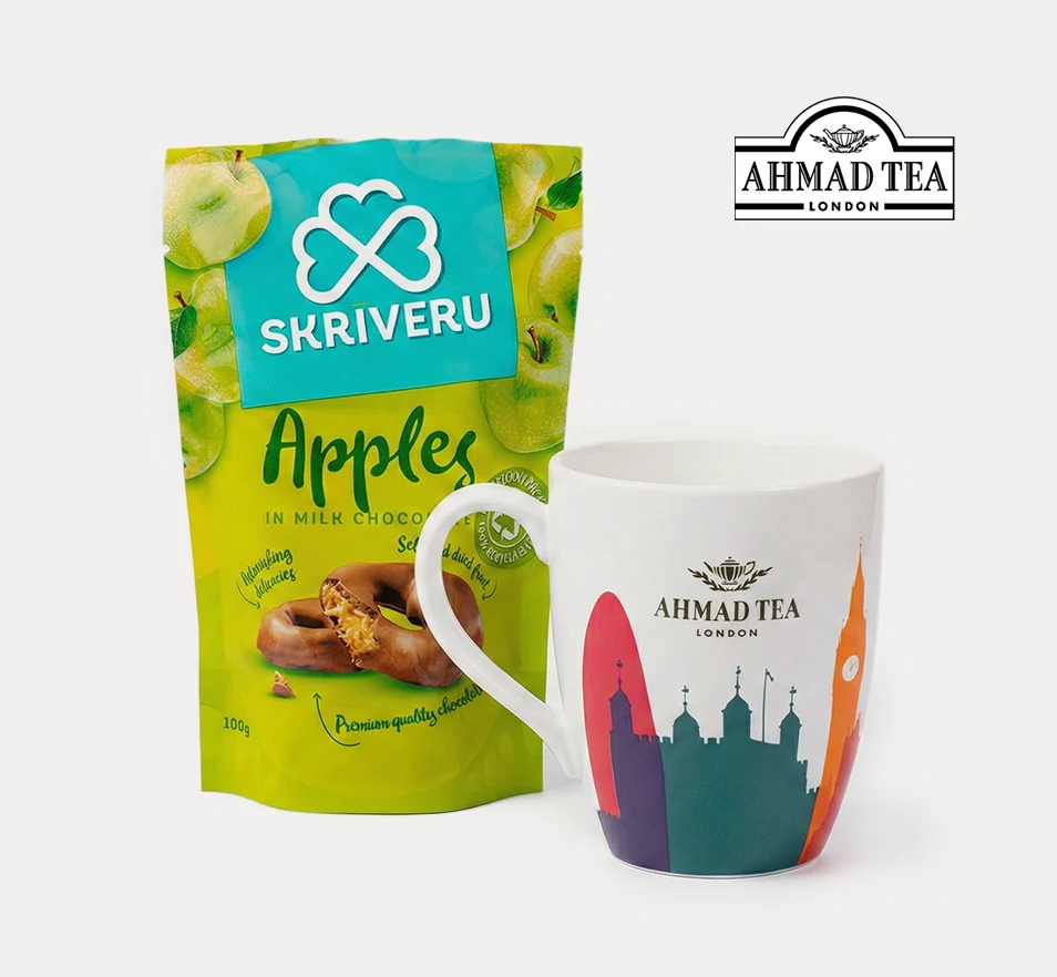 Osta Ahmad tooteid ja saa kingituseks Ahmad Tea kruus ja Skrīveru õunad piimašokolaadis (100g)!