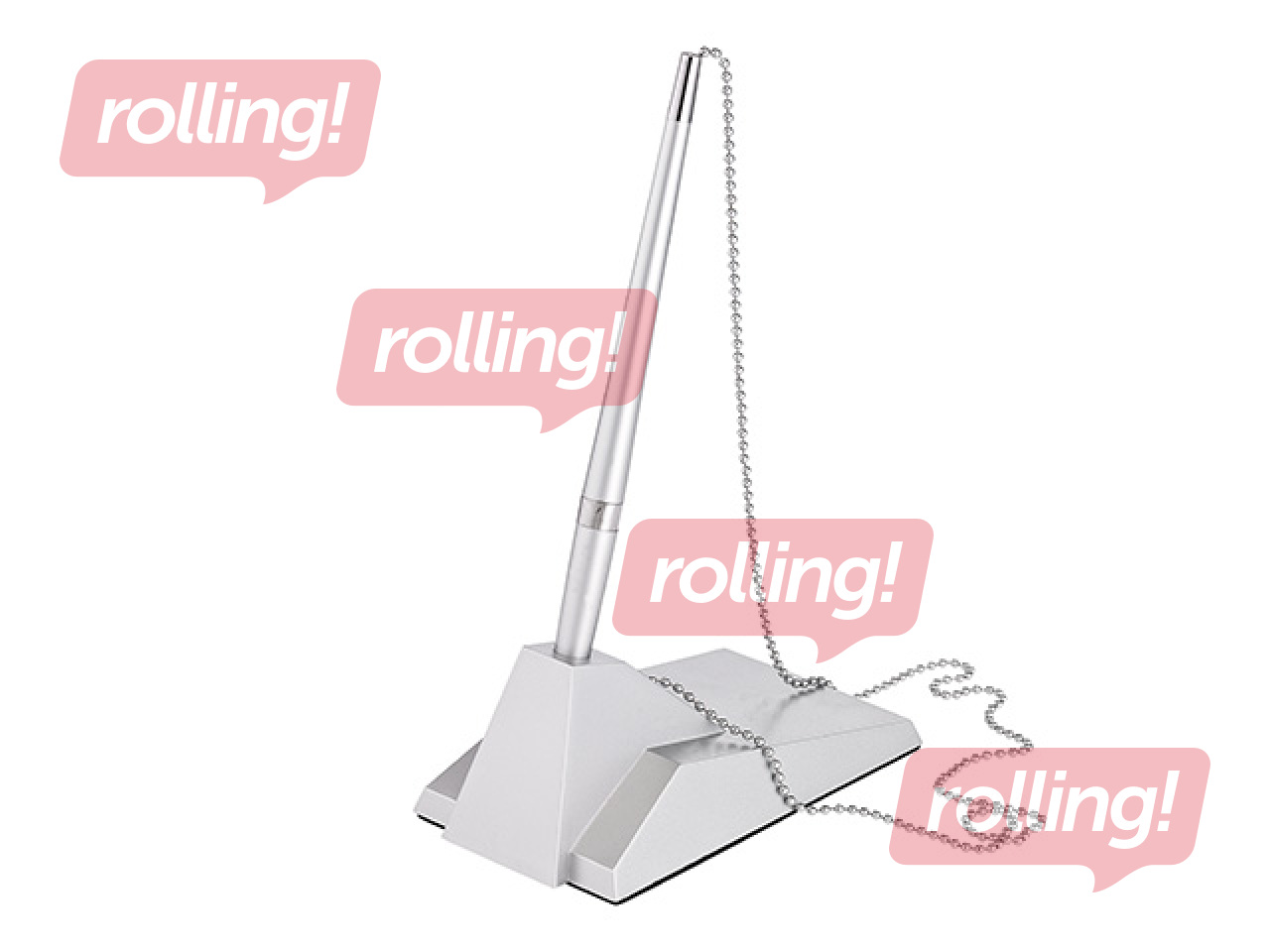 Plastikust kuulpliiats ristkülikukujulisel alusel tugeva metallist kuulketiga (kroomitud).