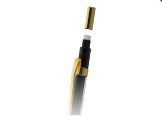 Kaheteistkümnenurkne mehaaniline pliiats klassikalises stiilis, kullatud metallosade ja sissetõmmatava mehhanismiga. Korgi all on kustutuskumm ja mugav kullatud metallist klamber. Süsi kõvadus: HB. Süsi läbimõõt: 0,5 mm.
