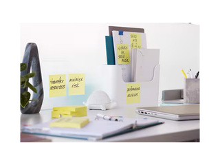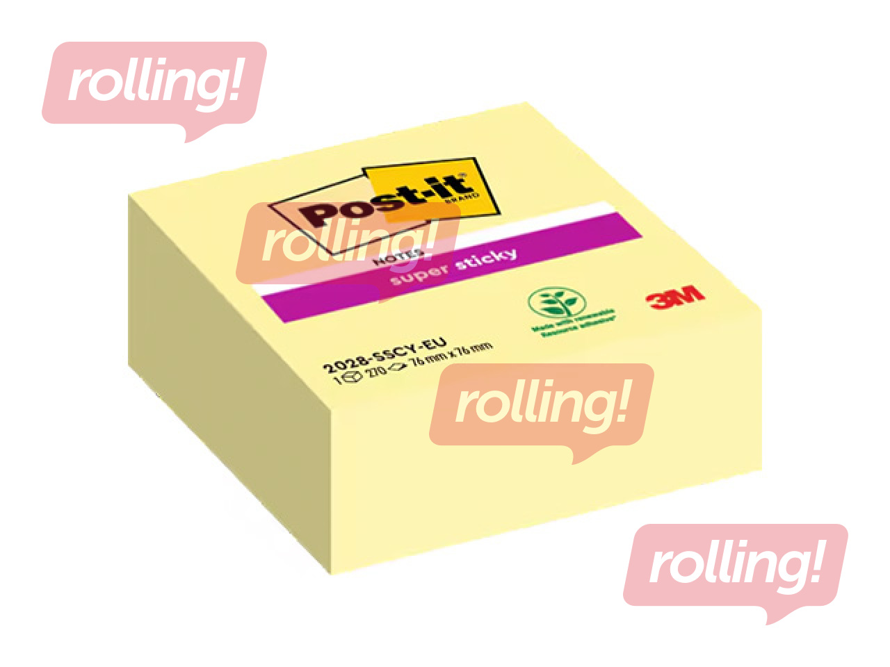 Post-it Super Sticky märkmepaberid on mõeldud märkmete, meeldetuletuste ja sõnumite jaoks erinevatel pindadel, pakkudes 2x tugevamat nakkumist võrreldes Post-it® Original Notes’iga. Need sobivad eriti hästi vertikaalsetele või raskemini kinnituvatele pindadele, nagu monitorid, uksed ja seinad. Lehtede mõõt on 76x76mm, kuubikus 270tk. Need on valmistatud PEFC-sertifikaadiga paberikiududest, liim sisaldab 60% taastuvat toorainet igal aastal uuenevast taimest, pakkudes jätkusuutlikumat lahendust igapäevaseks kontoritööks.