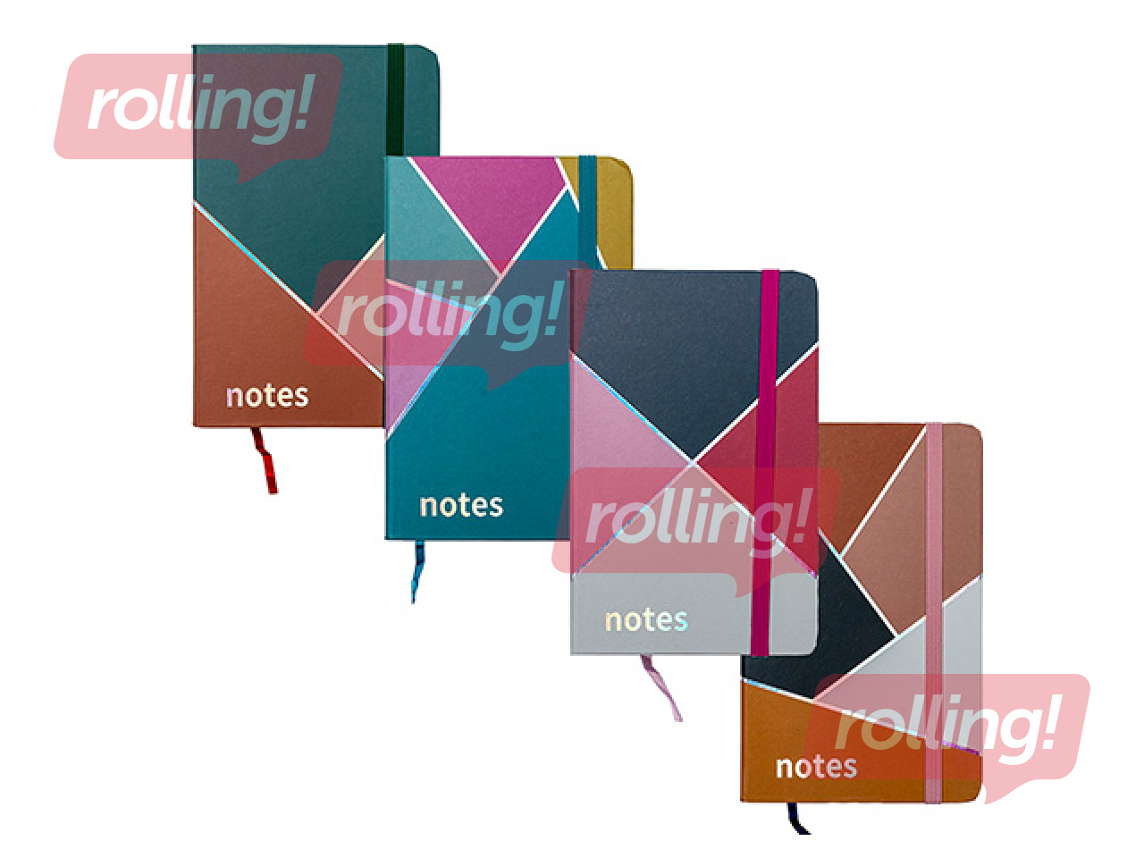 Kõvade kaantega märkmik Multicolor, kummiga, A6, 80 lehte