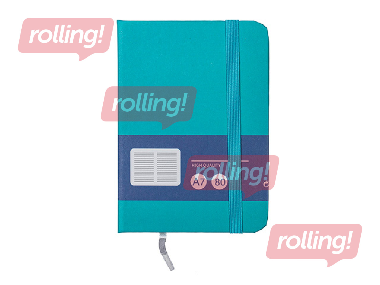 Kõvade kaantega märkmik Multicolor, kummiga, sinine, A7, 80 lehte