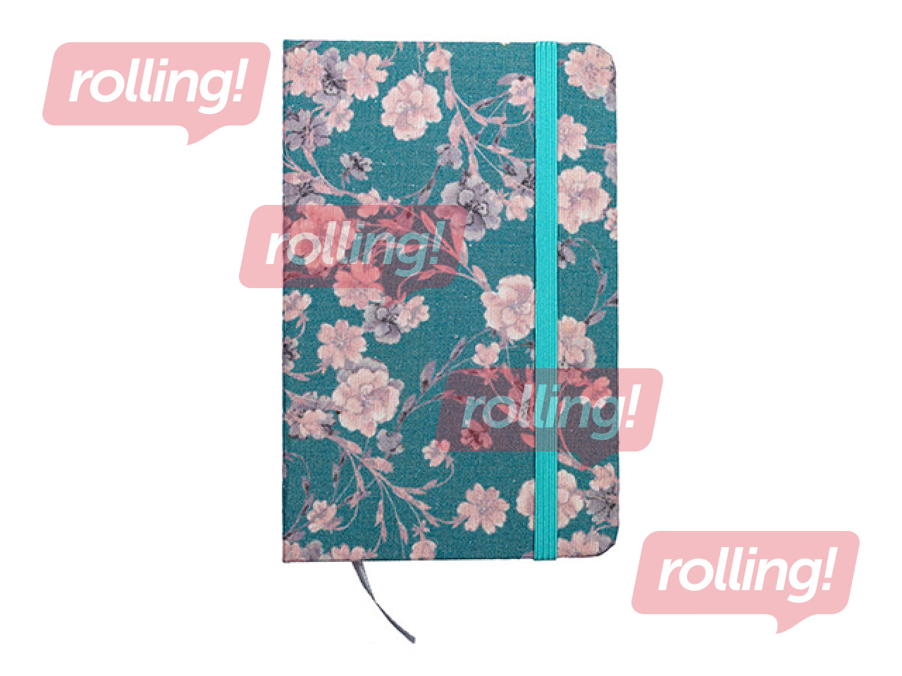 Kõvade kaantega märkmik Flowers, kummiga, helesinine, A7, 80 lehte