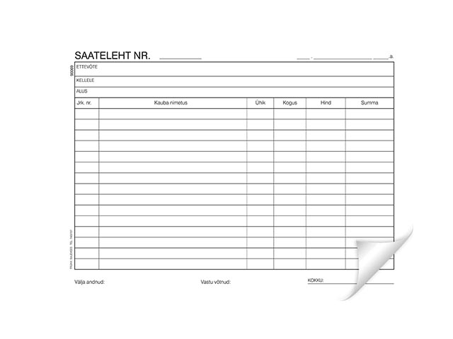Blankett "Saateleht A5" laiuti, isekopeeruv, 100 lehte CFB