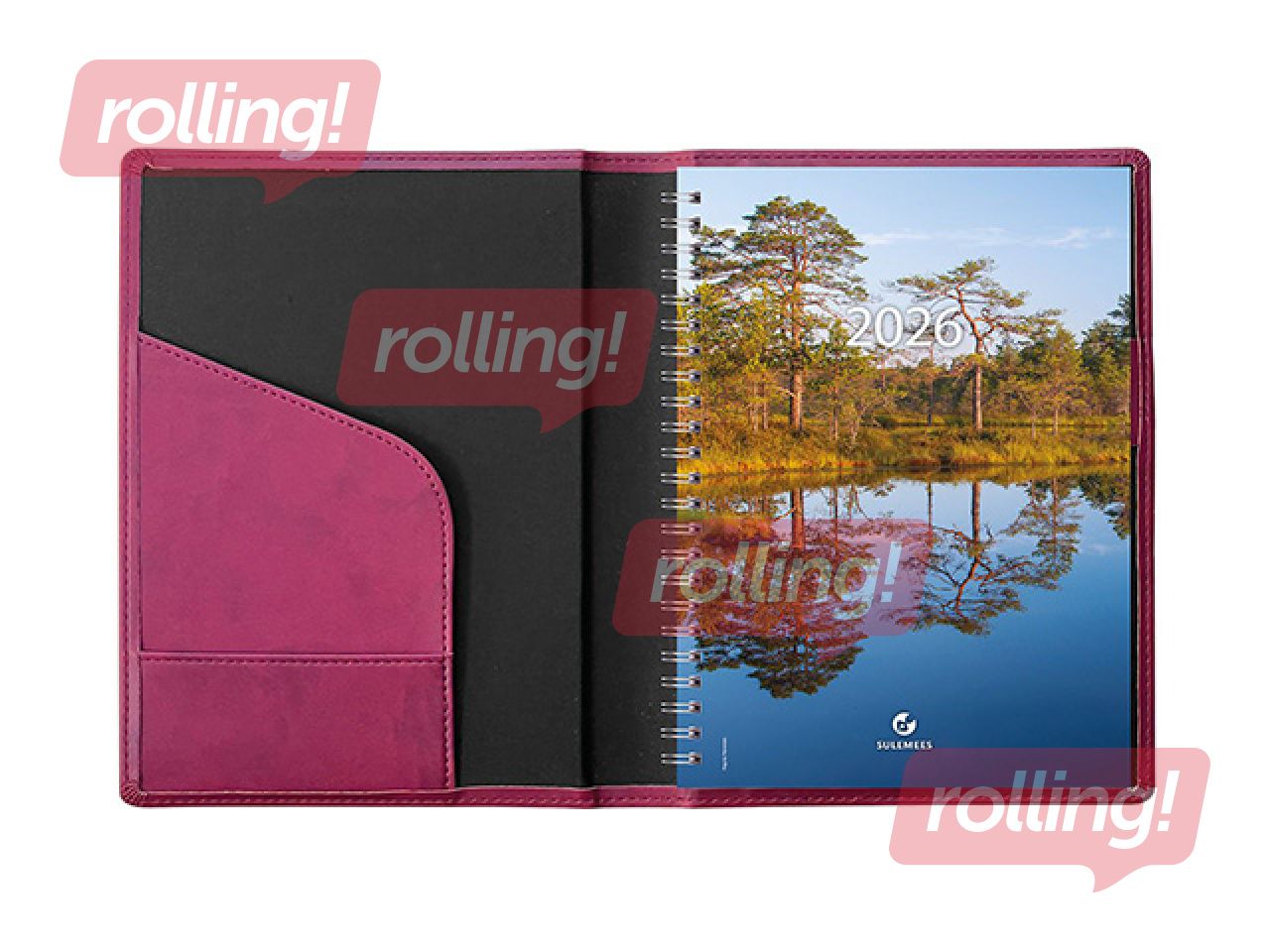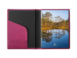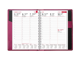 Kunstnahast kaantega spiraalköites kalender, lk. mõõt 142x202 mm. Trukiga kinnitus. Kalendaarium sisaldab riigipühi, riiklikke ja rahvakalendri tähtpäevi, lipupäevi, nimepäevi, 42 riigi pühi lühenditena, päikese tõusu ja loojangu aegu, kuu faase, aastaaegade alguseid, käesoleva ja järgneva aasta plaane, aasta tabelkalendreid, foneetilisi tähestikke, mõõtühikute teisendamise tabelit ja tabeleid enamuse maailma riikide telefoni koodide, valuuta, ajavahe jne kohta, 16 lk Eesti kaardivihikut. Pliiatsihoidja. Märkmeplokk tagakaane taskus.