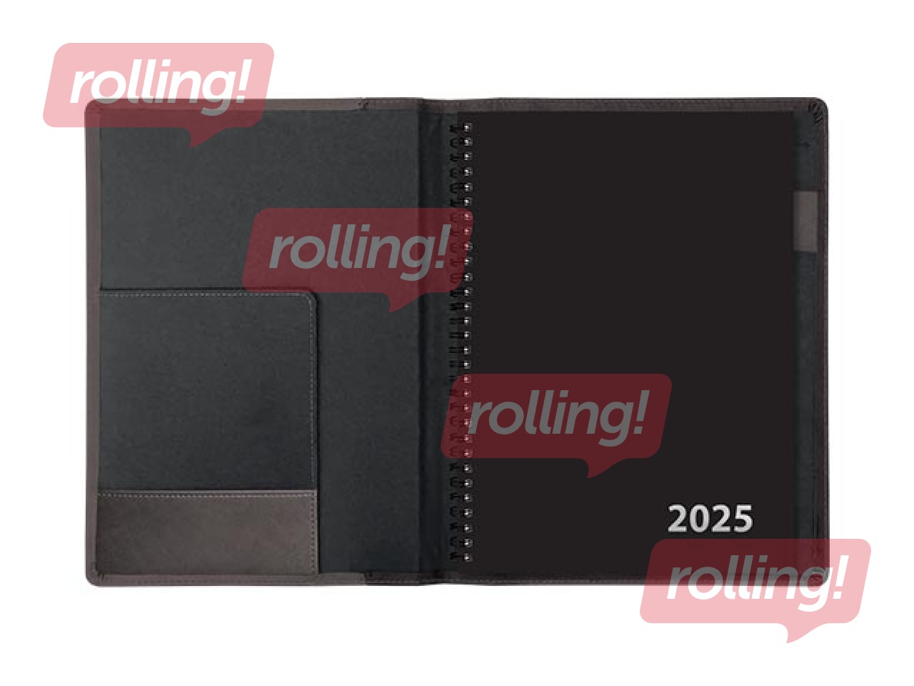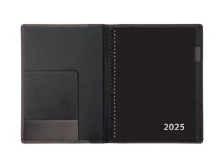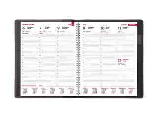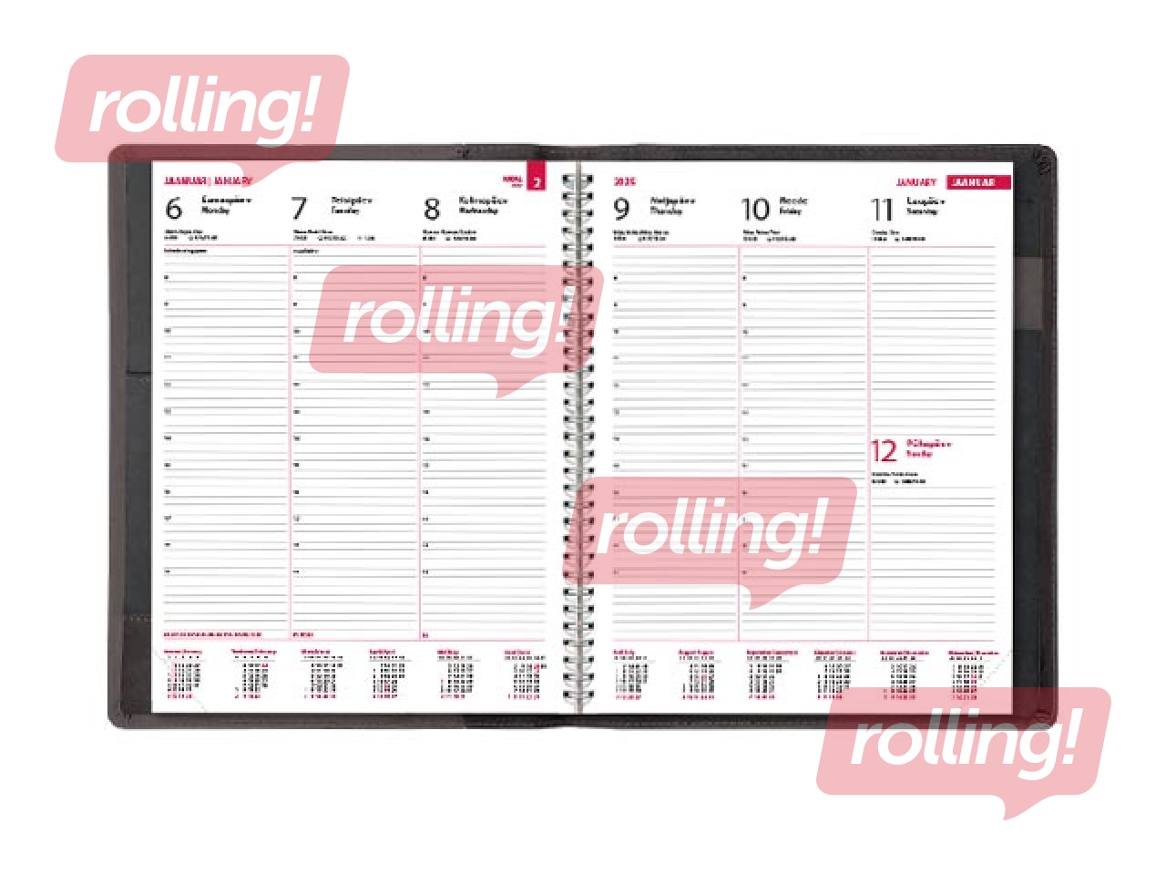 Kunstnahast kaantega spiraalköites kalender, lk mõõt 205x270mm. Kalendaarium sisaldab riigipühi, riiklikke ja rahvakalendri tähtpäevi, lipupäevi, nimepäevi, 42 riigi pühi lühenditena, päikese tõusu ja loojangu aegu, kuu faase, aastaaegade alguseid, käesoleva ja järgneva aasta plaane, aasta tabelkalendreid, foneetilisi tähestikke, mõõtühikute teisendamise tabelit ja tabeleid enamuse maailma riikide telefoni koodide, valuuta, ajavahe jne kohta. Pliiatsihoidja.