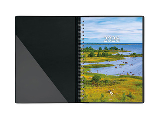 Plastkaanega spiraalköites kalender, lk. mõõt 142x202 mm. Kalendaarium sisaldab riigipühi, riiklikke ja rahvakalendri tähtpäevi, lipupäevi, nimepäevi, 42 riigi pühi lühenditena, päikese tõusu ja loojangu aegu, kuu faase, aastaaegade alguseid, käesoleva ja järgneva aasta plaane, aasta tabelkalendreid, foneetilisi tähestikke, mõõtühikute teisendamise tabelit ja tabeleid enamuse maailma riikide telefoni koodide, valuuta, ajavahe jne kohta, 16 lk Eesti kaardivihikut.