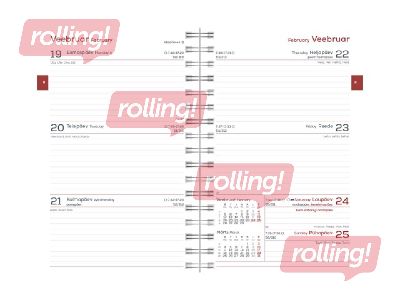 Taskukalender Kalendermärkmik Spirex, kuntsnahast kaante, spiraalköide, Nädal H