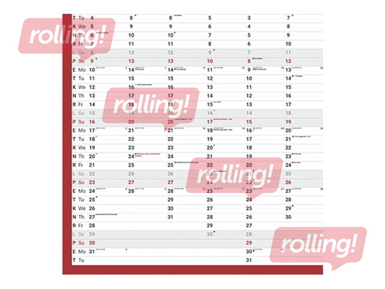 Kahevärviline seina-, lauakalender