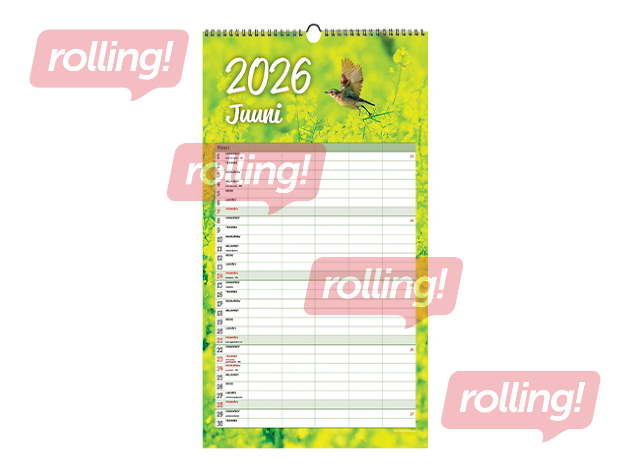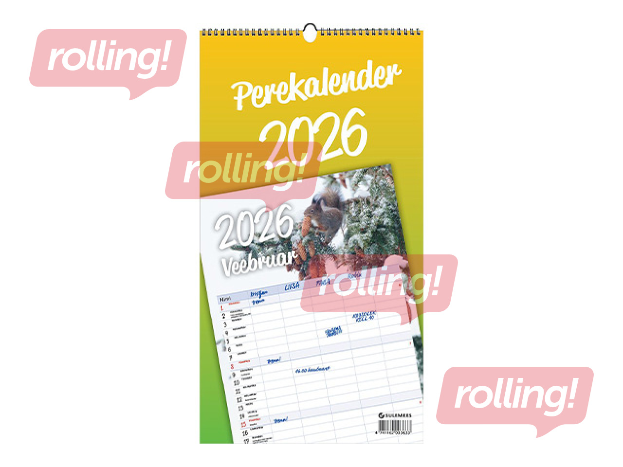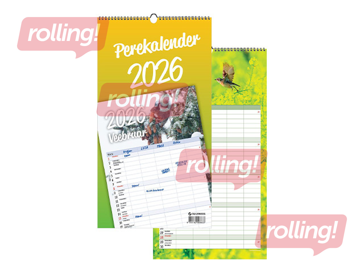 Seinakalender pereliikmete tegevuste planeerimiseks. Riputusaasaga spiraalköide, suurus 225x420 mm. Kalendaarium sisaldab riigipühi, riiklikke ja rahvakalendri tähtpäevi, lipupäevi, kuu faase, aastaaegade alguseid.