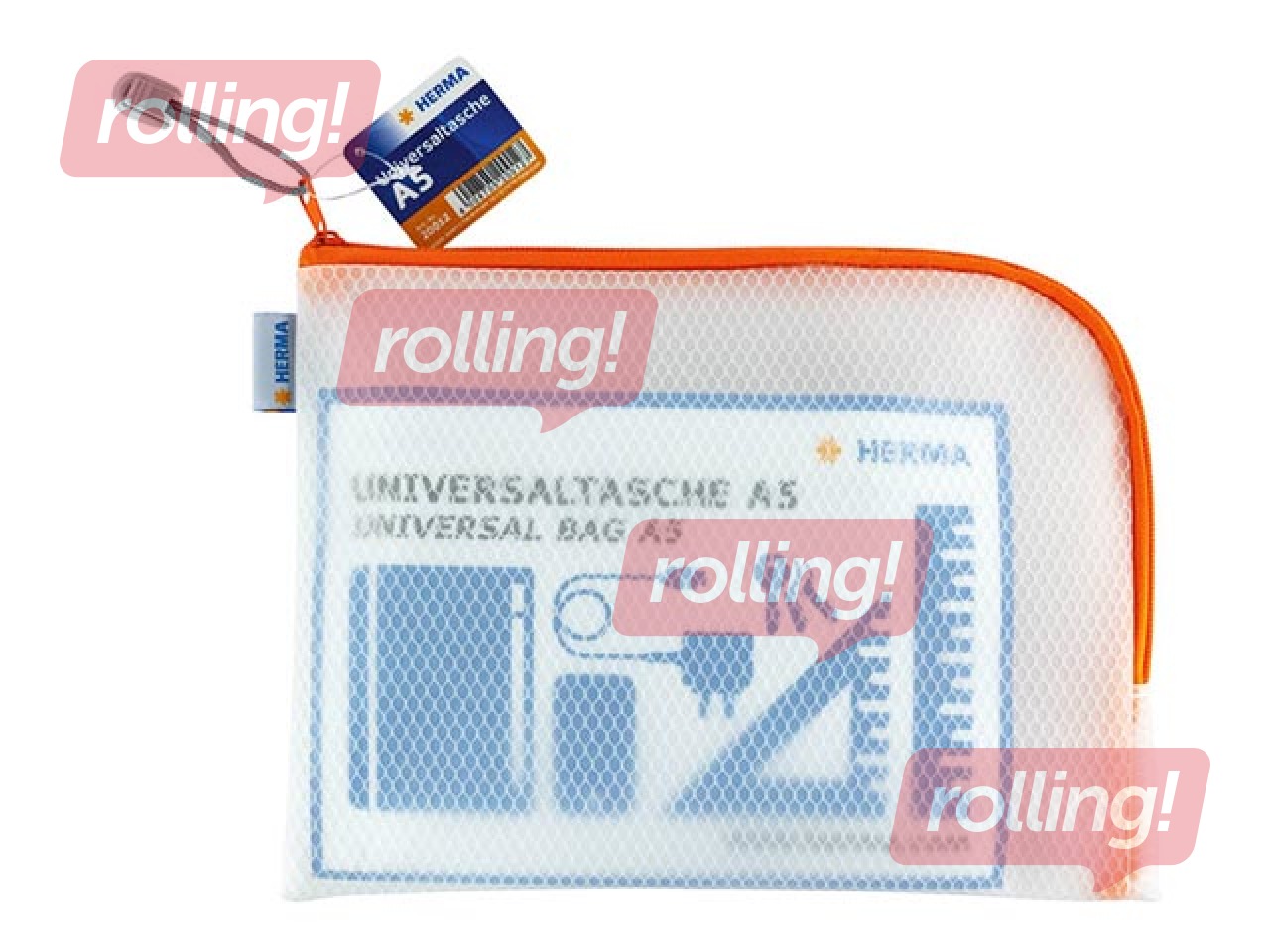 Kileümbrik – suletav Herma, A5, läbipaistev, oranži zip lukuga