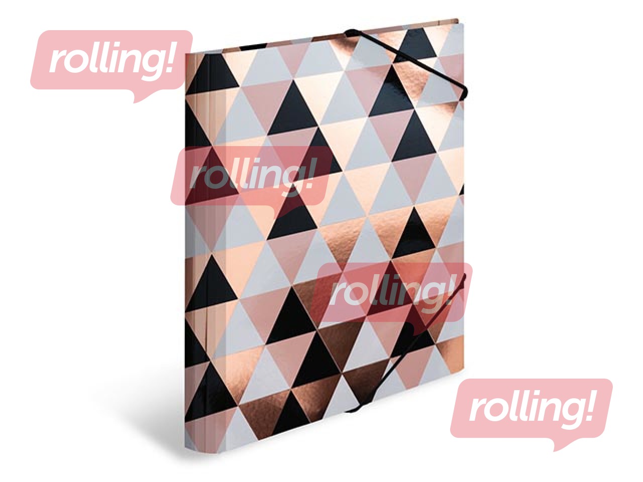SALE Kummiga kaust A4, kartong, roosakas-kuldne