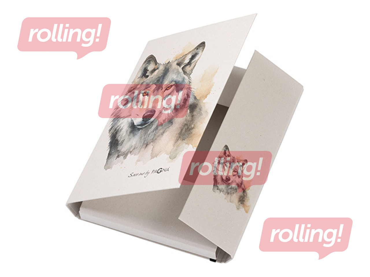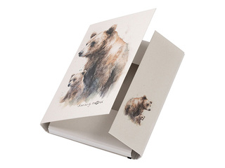 Cover made of sturdy grey cardboard (RC) covered with recycled paper. Printed with rabbit motif. With practical elastic closure