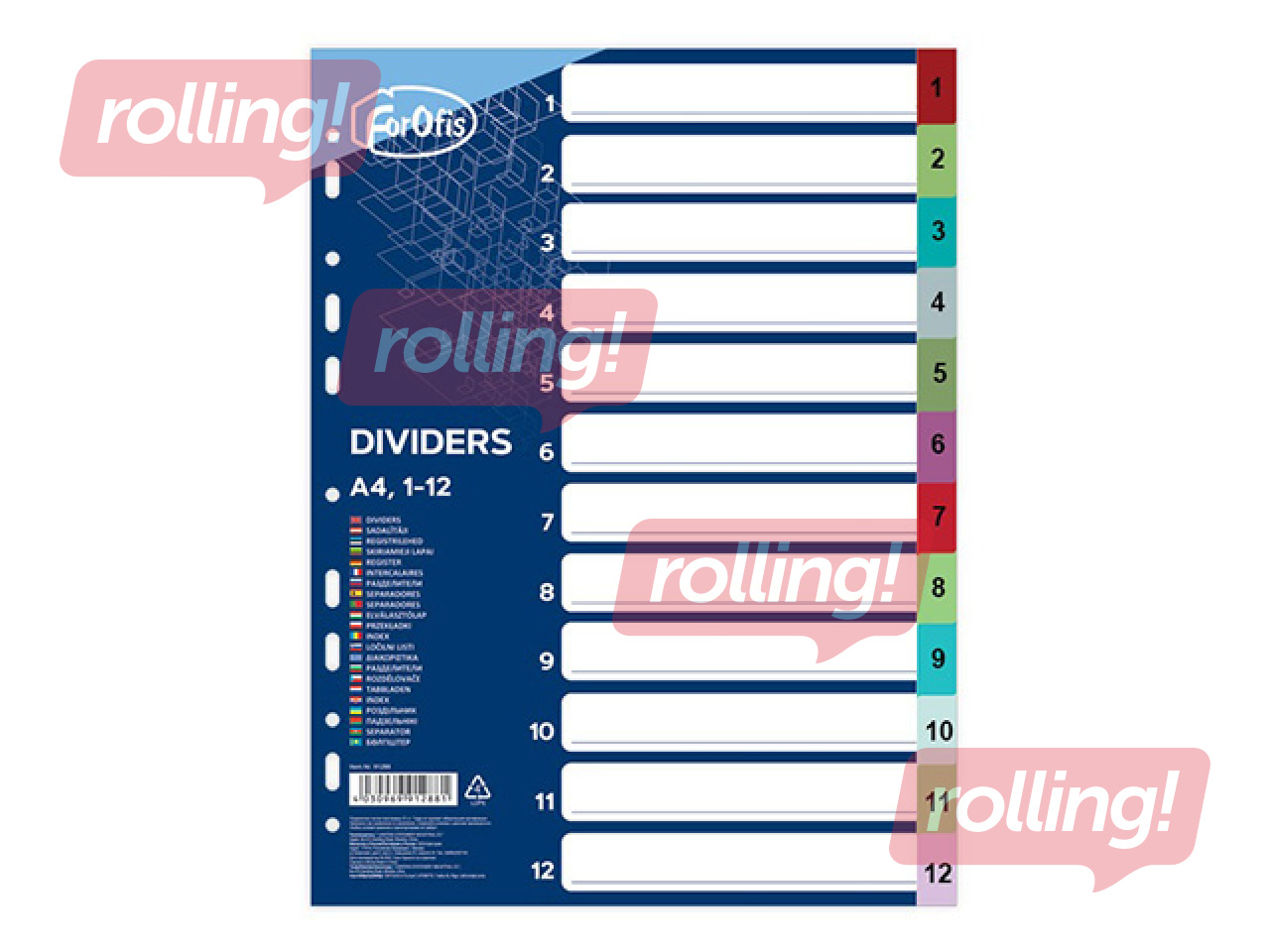 Dokumendijaotur Forofis, A4, PP, 12 jaotist, värviline numbritega