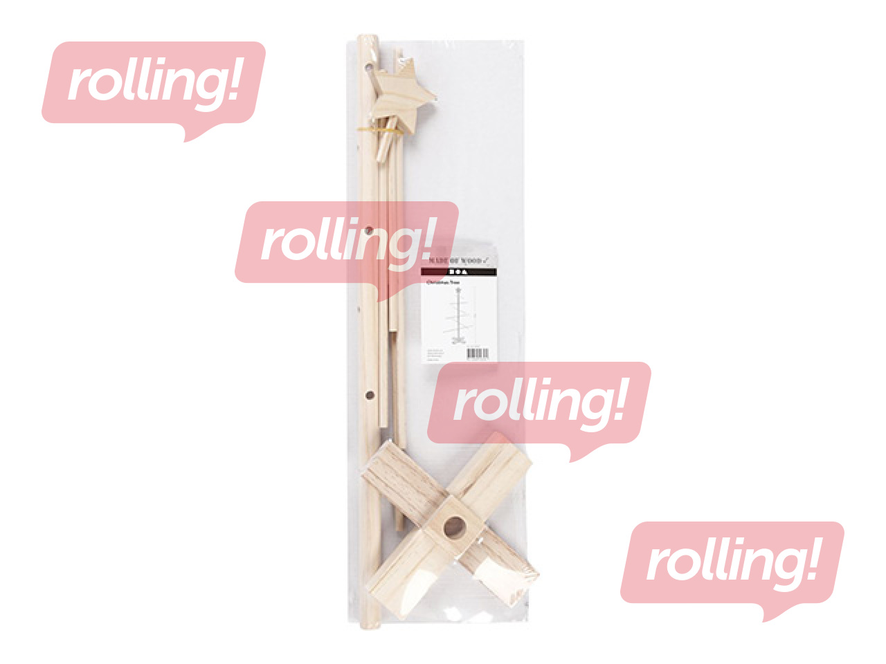 Komplekt sisaldab viieharulist tähekujundiga alust (18 cm), kuut eri pikkusega ümarpuidust pulka eelpuuritud avadega ning tippu kinnitatavat tähte.