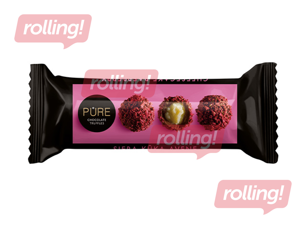 Piimašokolaadi trühvlid Pure Chocolate juustukoogimaitselise kreemitäidise ja vaarikakaunistusega, 32g