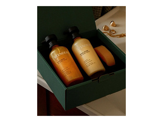 Komplekt igapäevaseks, elegantseks kätehooldusrutiiniks. Säraga vedelseep ja kerge, tugevdavate omadustega kätekreem niatsiinamiidi ja hüaluroonhappega. Mõlemad tooted sisaldavad kulda ja granaatõuna ekstrakti, pakkudes õrna hoolitsust käte pehmele nahale. Viimistletud, kauakestev magusate lillede ja muskuse aroom. Komplektis on ka kingitus – jätkusuutlik seep “Puuviljad”, mis tuletab meelde, et hoolimine loodusest algab sinu vannitoast.