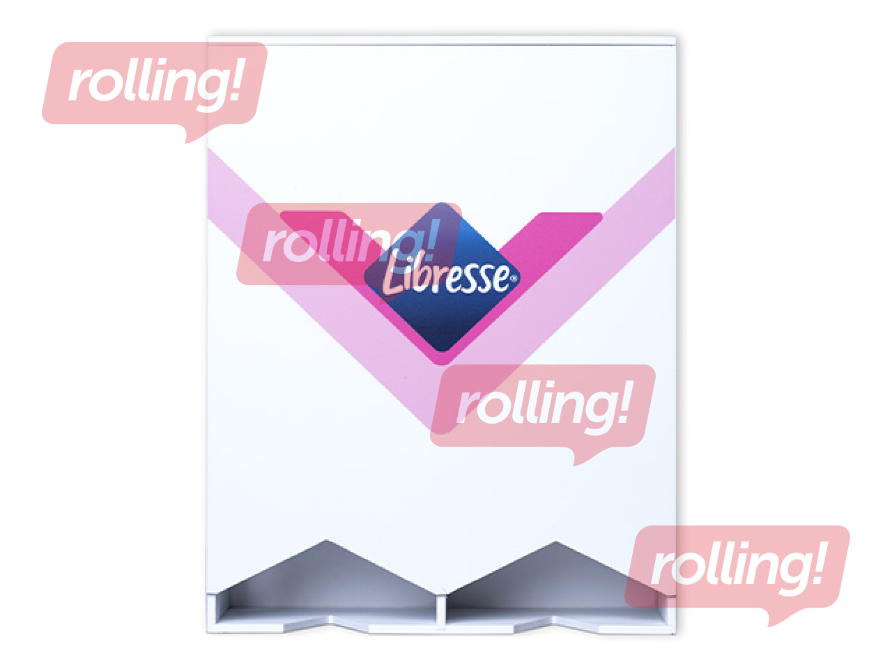 Hügieenitoodete hoidik Libresse on mõeldud naiste hügieenisidemete mugavaks ja hügieeniliseks hoiustamiseks avalikes tualettides, kontorites või haridusasutustes. Dispenseri ühele küljele saab paigutada kuni 54 tavalist päevast sidet, kogumaht 108tk, tagades selge ja kontrollitud väljastamise.