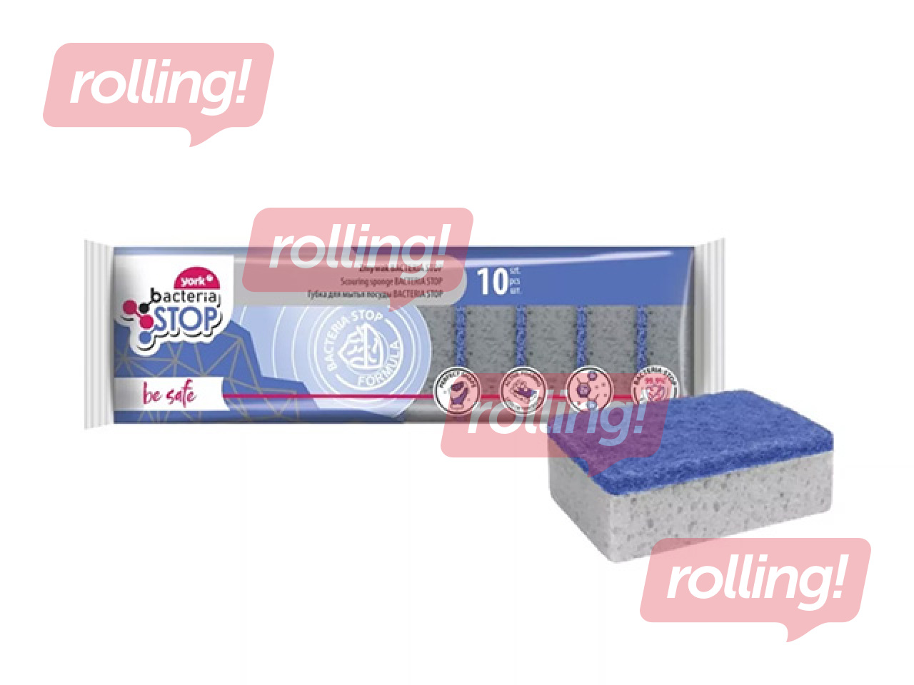 Nõudepesukäsnad York, Bacteria Stop, hallid, 10x7cm, 10 tk