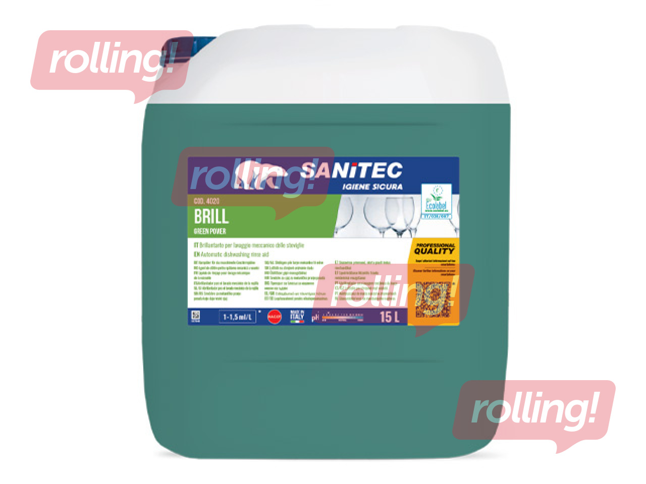 Nõude loputusvahend Sanitec, Brill, Green Power, nõudepesumasinatele, 15l