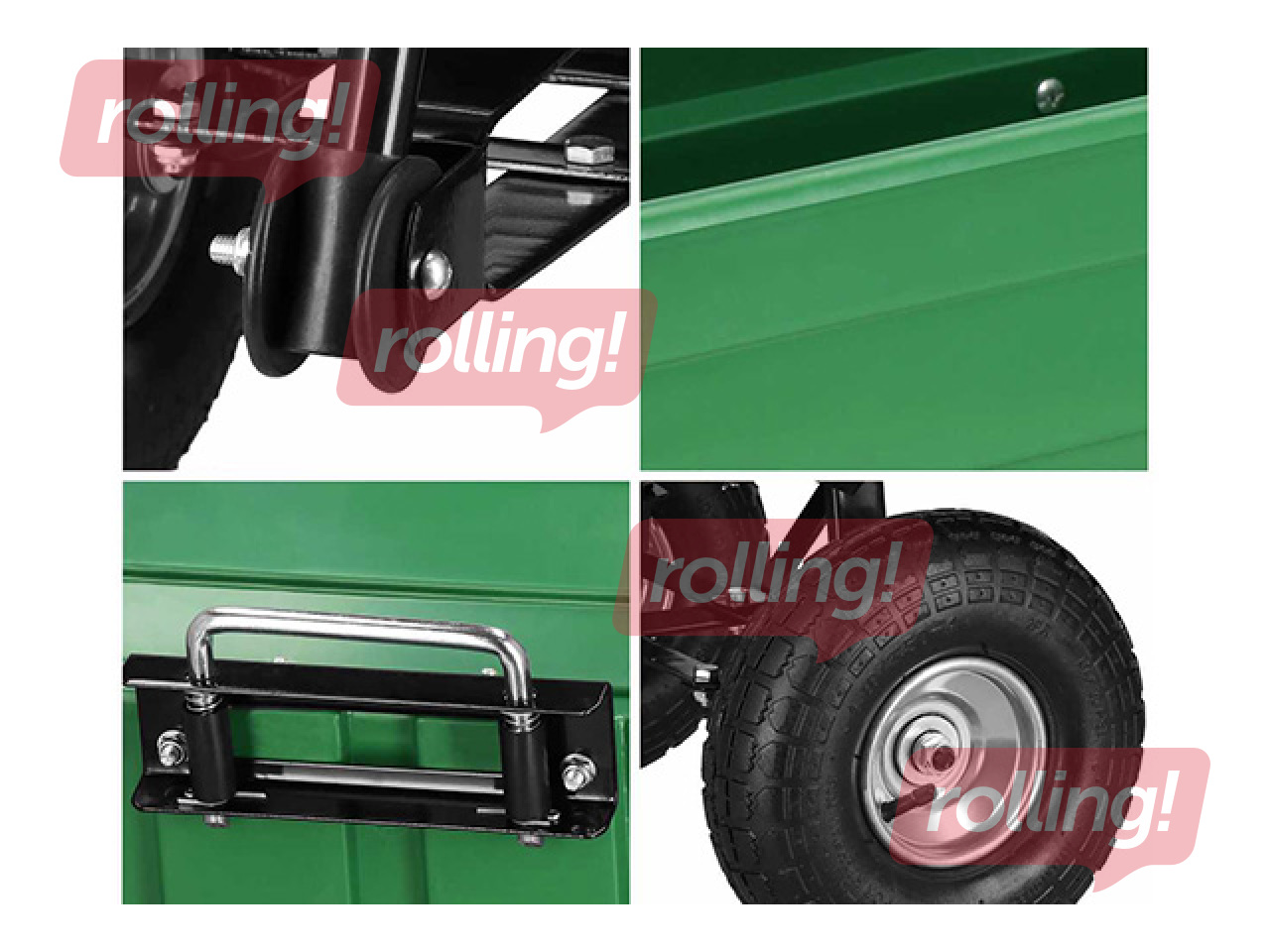 See eriti vastupidav ja mahukas roheline "Springos" aiaveok on asendamatu abiline raskete koormate transportimisel. Muljetavaldava, kuni 250 kg kandevõimega sobib see suurepäraselt suurte koguste mulla, küttepuude, kivide, ehitusmaterjalide või aiatööriistade teisaldamiseks. Vastupidav konstruktsioon ja suured rattad tagavad stabiilsuse ja lihtsa manööverdamise ka ebatasasel pinnal, muutes kõige nõudlikumad aia- ja majapidamistööd oluliselt lihtsamaks.