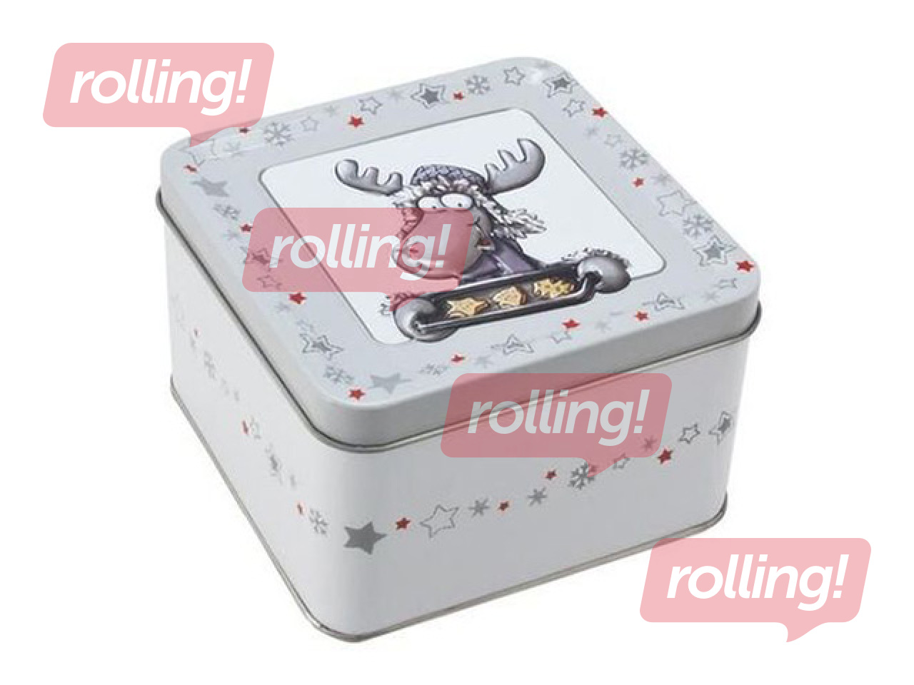 Kaunis metallkarp põhjapõdra motiiviga — sobib ideaalselt kingituste, maiustuste, küpsiste või väikeste esemete hoiustamiseks. Vastupidav ja taaskasutatav, lisab igale ruumile pidulikkust ja soojust.