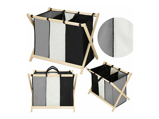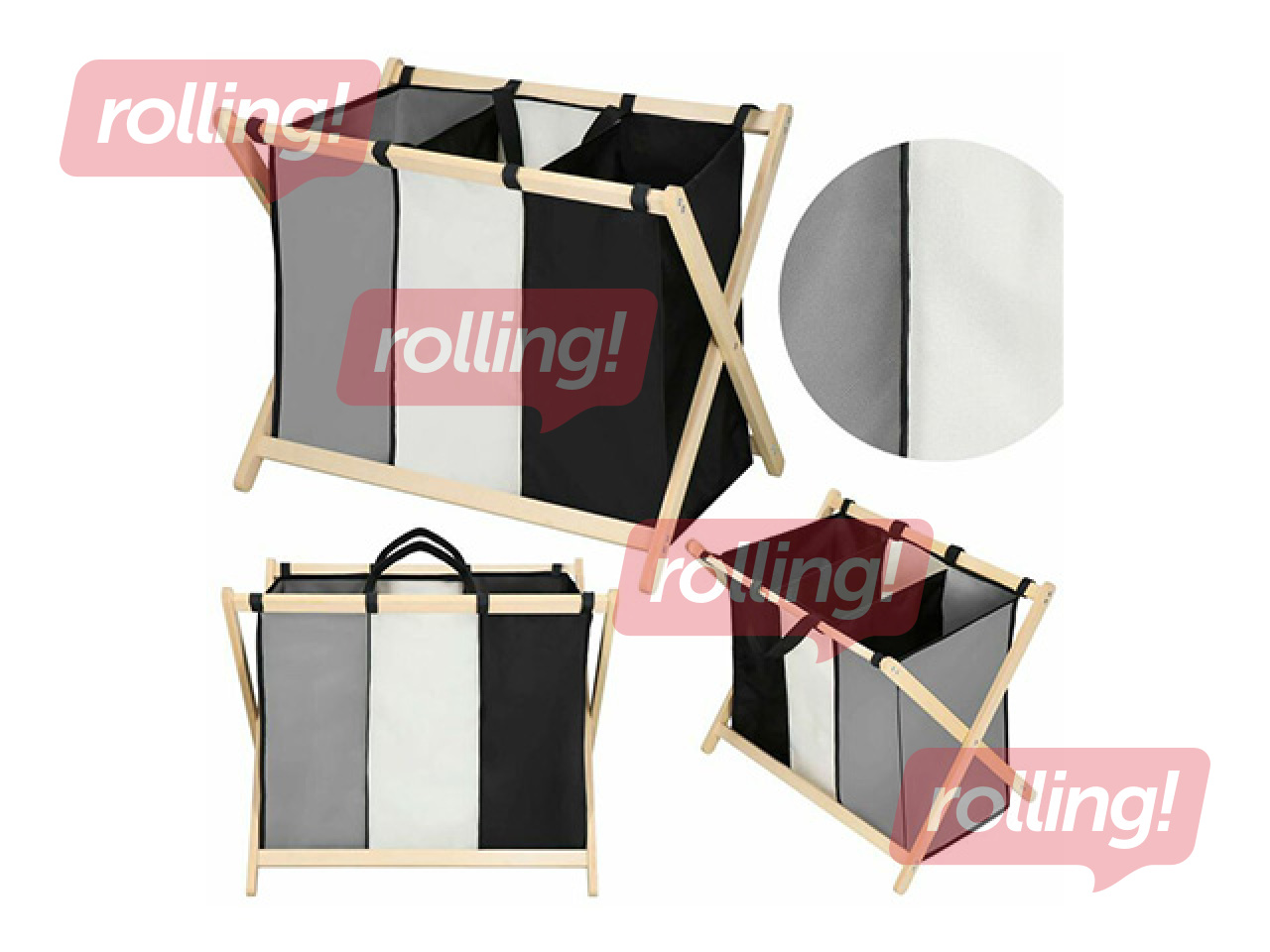Pesukorv Springos, kolm sektsiooni, kangas, puitraam, 105l Võrdle