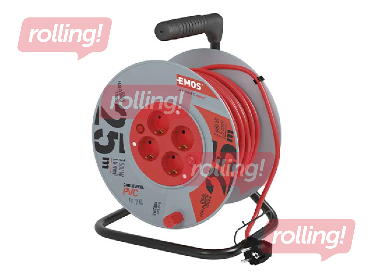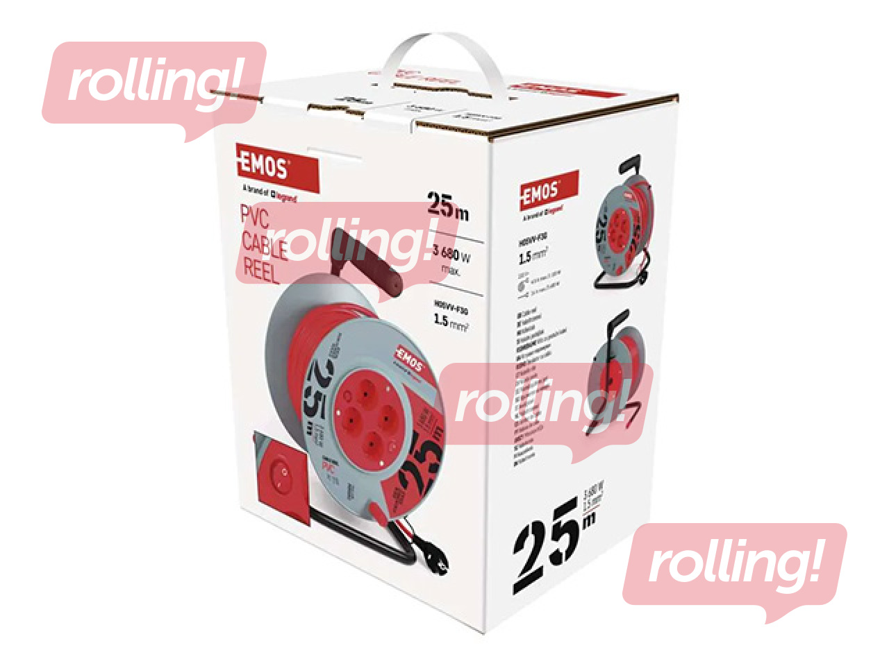 Pikendusrull, 25 m / 4 pistikupesa / punane / PVC / 230 V / 1,5 mm2