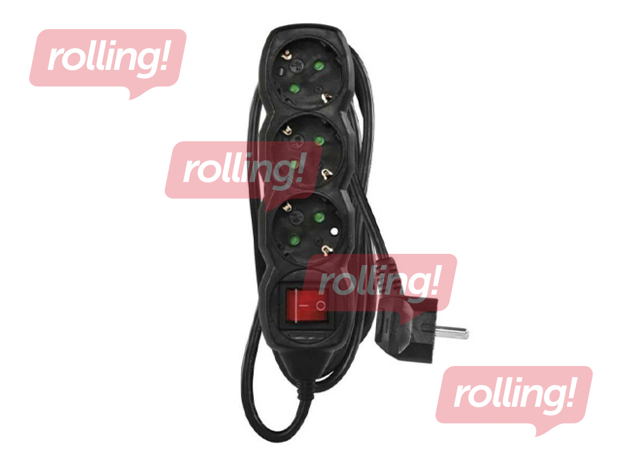 Pagarinātājs 3-vietīgs 1.5m ar zemējumu un slēdzi, melns