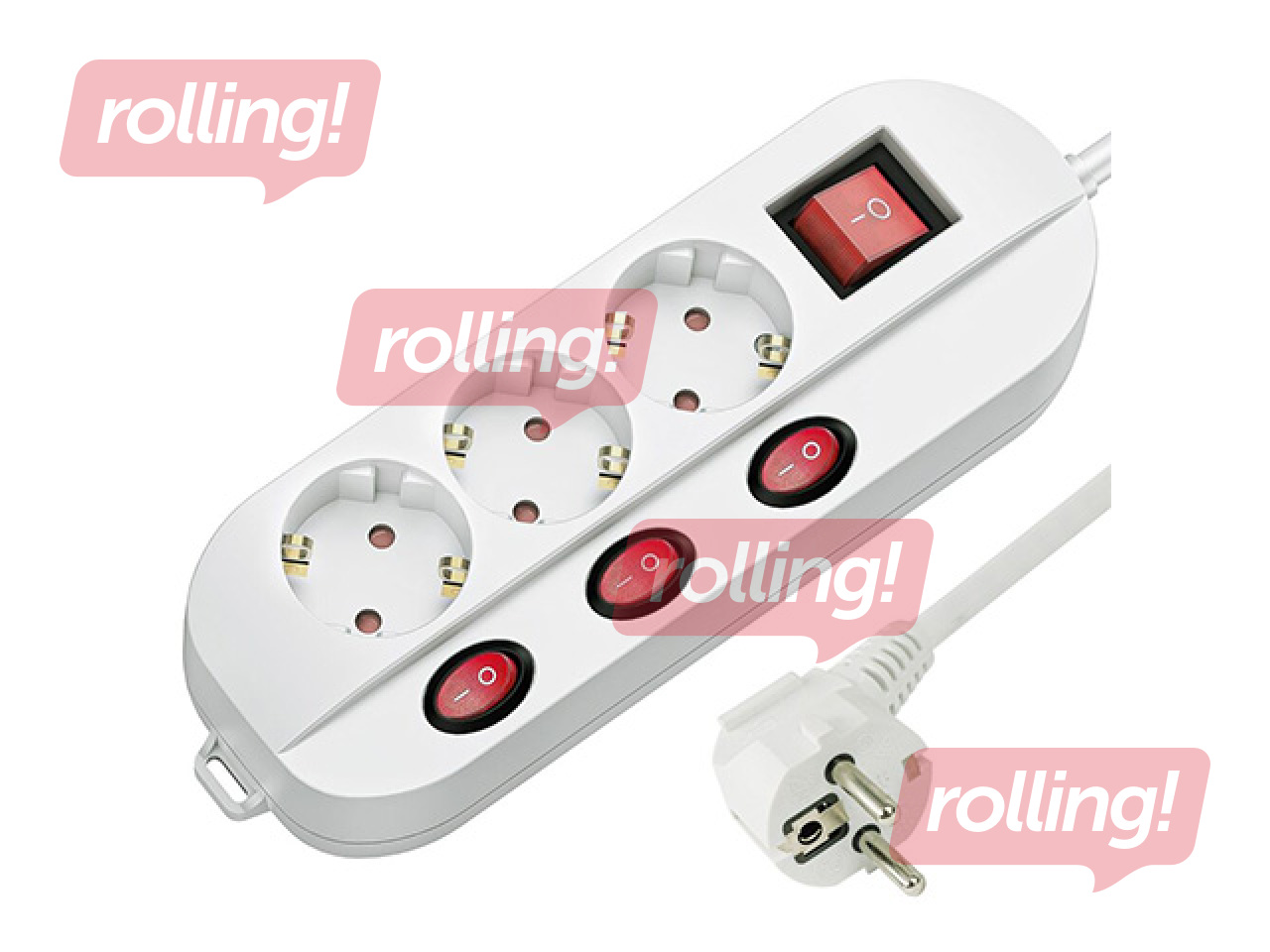 Pikendusjuhe, 3 pistikupesa, maandusega ja 3+1 lülitiga, valge, 1.5m