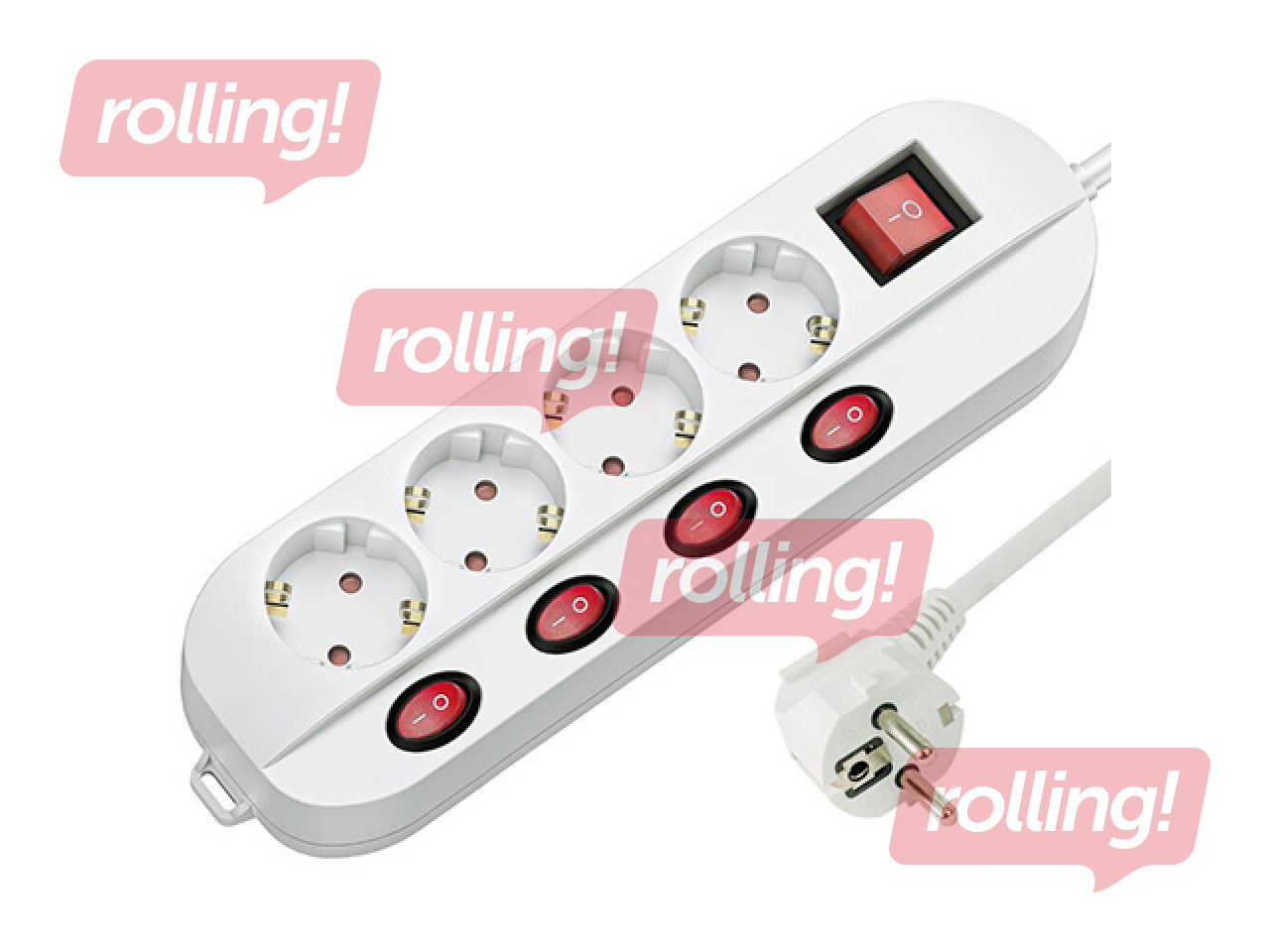 Pikendusjuhe, 4 pistikupesa, maandusega ja 4+1 lülitiga, valge, 1.5m