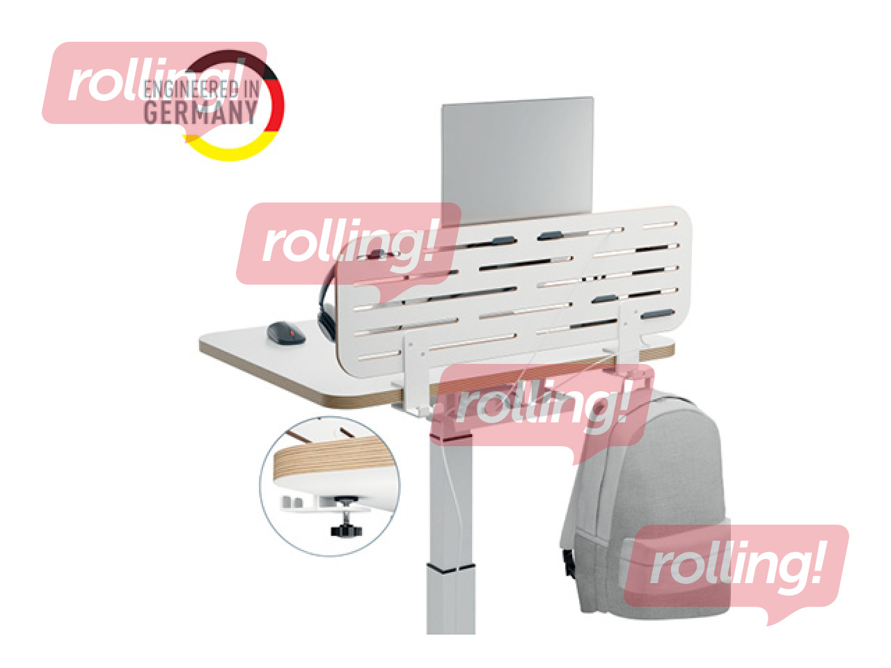 Klambrikinnitust on lihtne paigaldada kaasasoleva kuuskantvõtmega (puurimine ei ole vajalik), mõlemad lauaklambrid on praktilised riputuskonksud koti ja jope jaoks korrastussüsteemi tagaosas; pehmed kummipadjad kaitsevad laua pinda kriimustuste eest.