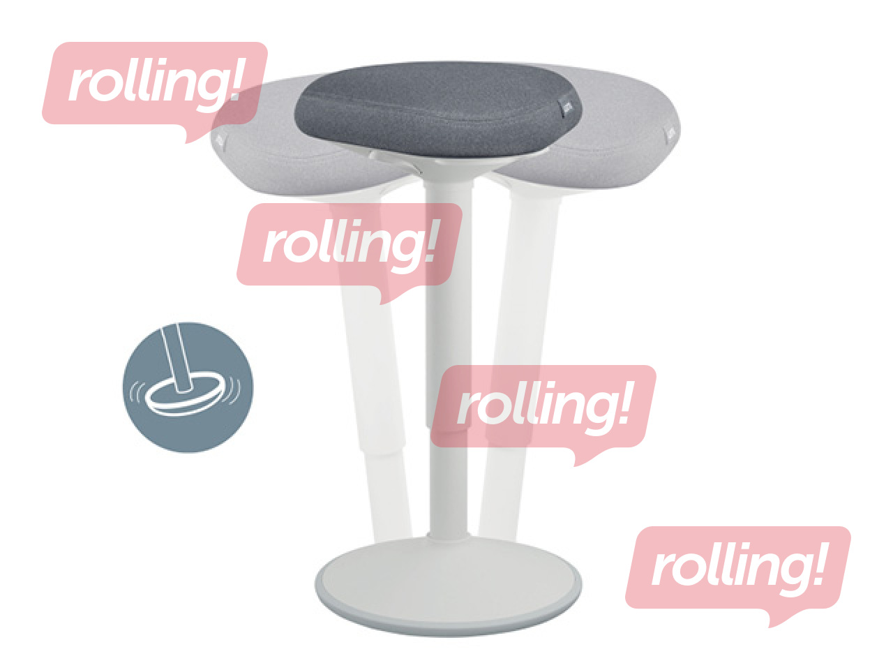 Ümar võnkuv alus julgustab õõtsuvaid ja pöörlevaid liigutusi, et tugevdada selga ja keha keskosa laua taga töötades.