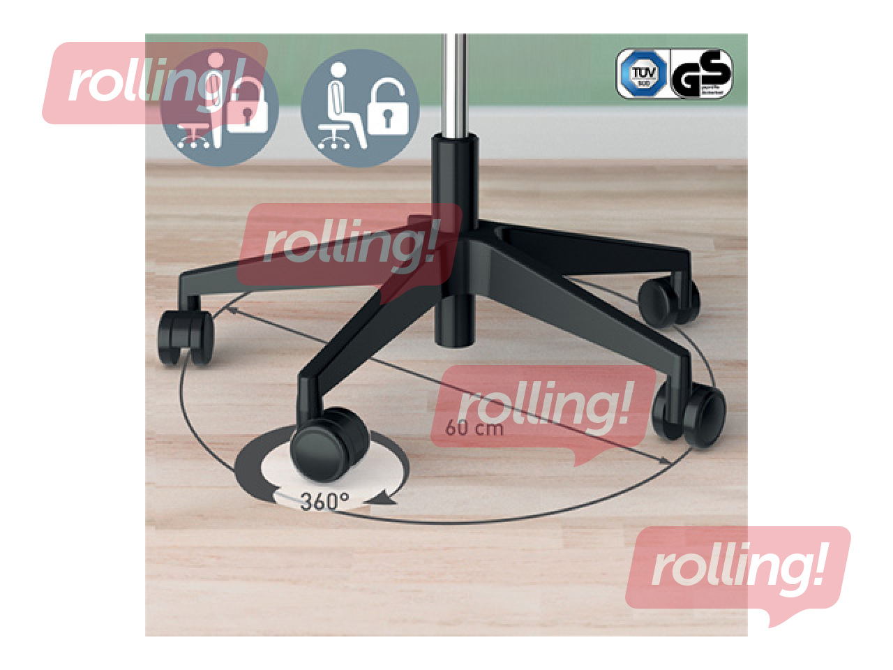 Stiilne ja ergonoomiline istumistool ratastega, mis soodustab liikumist ja mugavust. Laiem 60 cm alus takistab ümberkukkumist. Saksamaa TÜV ja GS ohutustestitud.