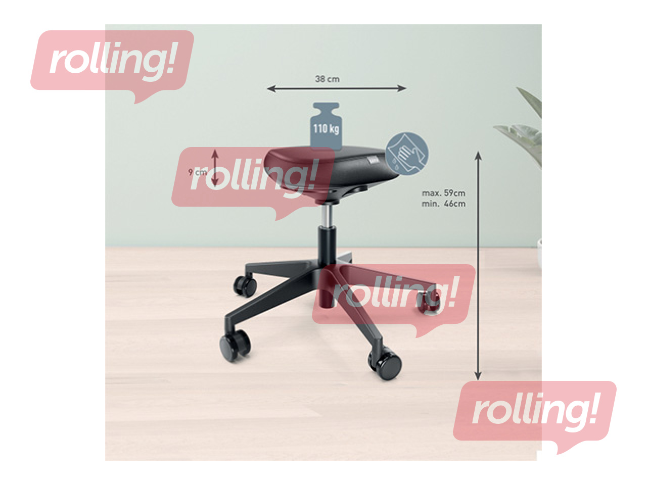 Sujuv pneumaatiline kõrguse reguleerimine vahemikus 46–59cm, kasutades ühte kolmest nupust istme all – mugav igas istumisasendis.