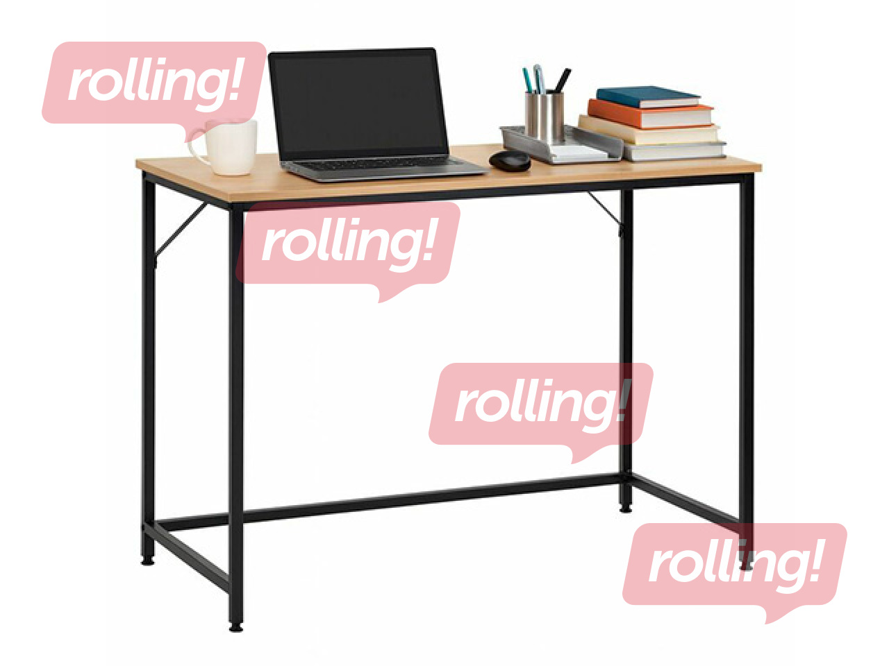Kontorilaud Springos, must raam, puidutooni tööpind, 100×50×76cm
