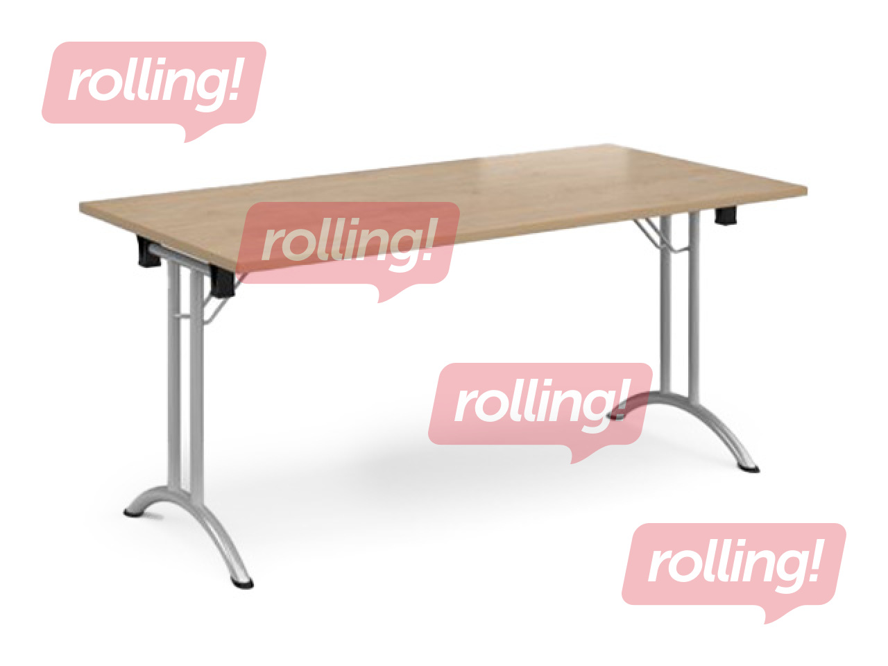 Laud kokkupandavate metalljalgadega, mis paiknevad lauaplaadi all. Stabiilne ja vastupidav lahendus, sobiv konverentsi- ja koosolekuruumide sisustamiseks. Jalad on hõlpsasti kokku klapitavad, võimaldades laudu üksteise peale asetada ja ruumis kompaktselt hoiustada.