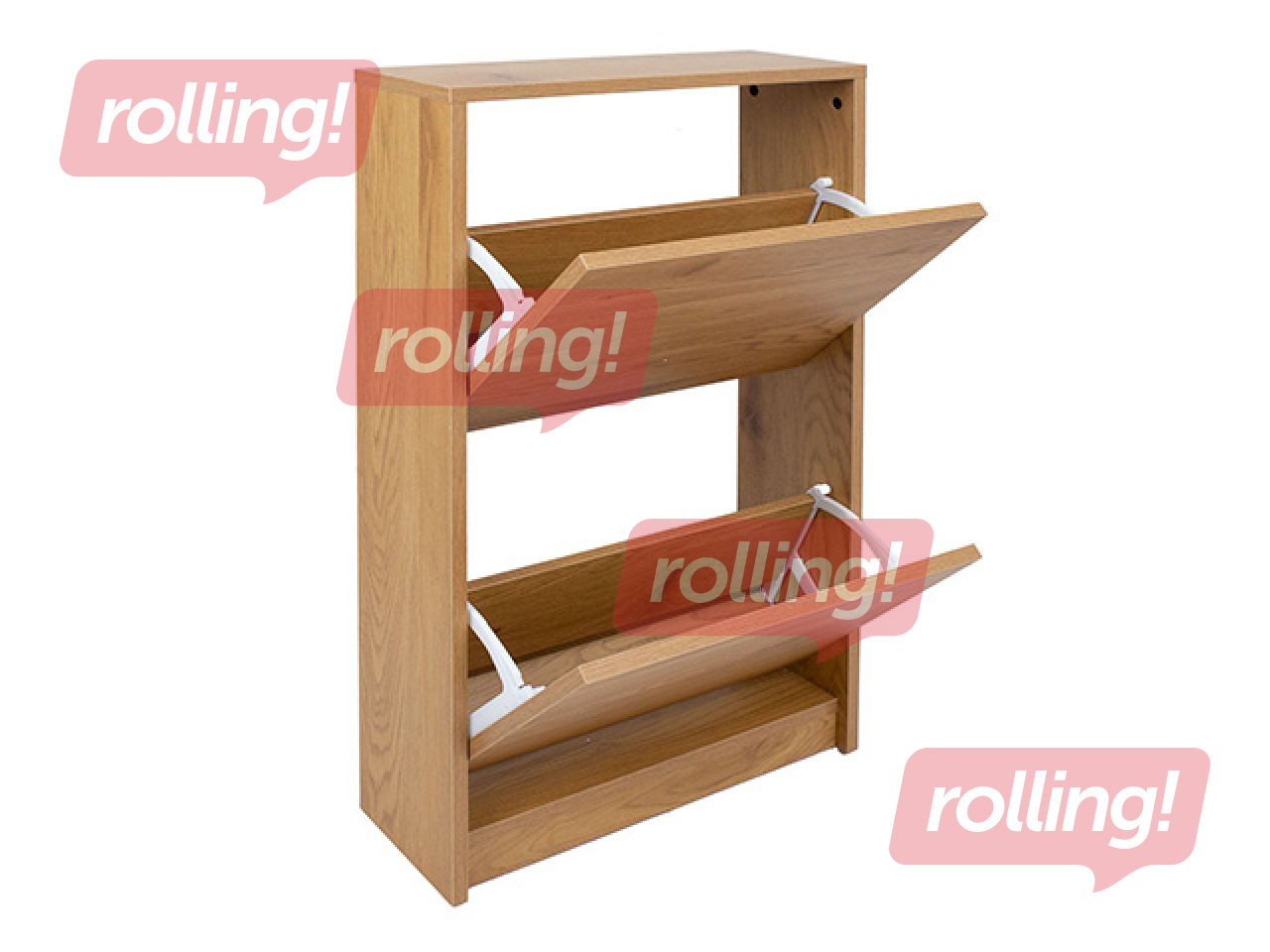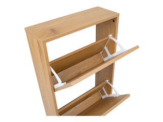 Funktsionaalne ja kompaktse disainiga Aalborgi jalatsikapp kahe sahtliga on ideaalne lahendus jalanõude korrastamiseks esikus või koridoris. Melamiinkattega puitlaastplaadist valmistatud kapp tammeefektiga viimistlusega pakub vastupidavat ja hõlpsasti hooldatavat pinda ning loomulikku puidumustrit.