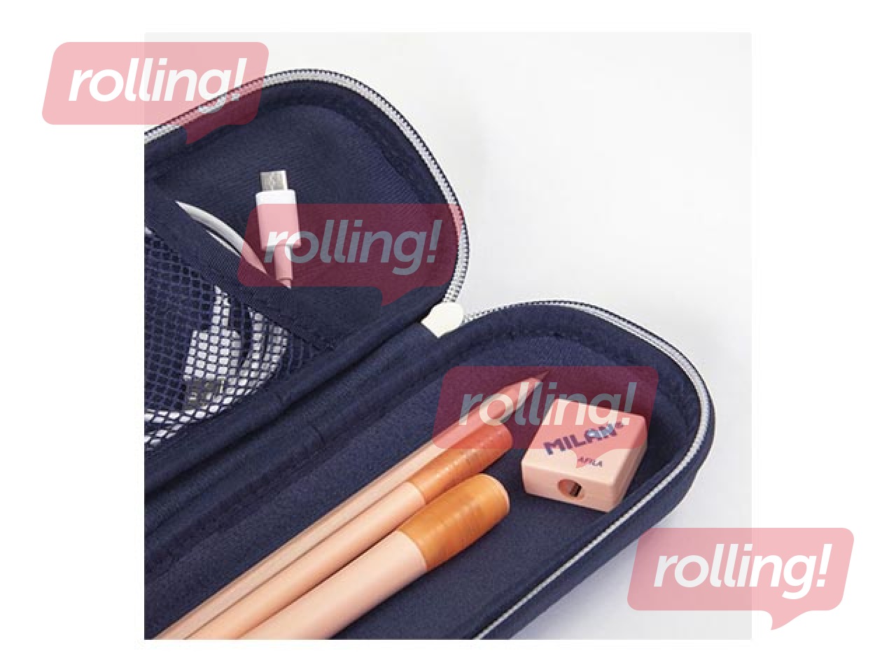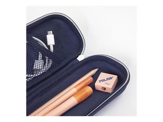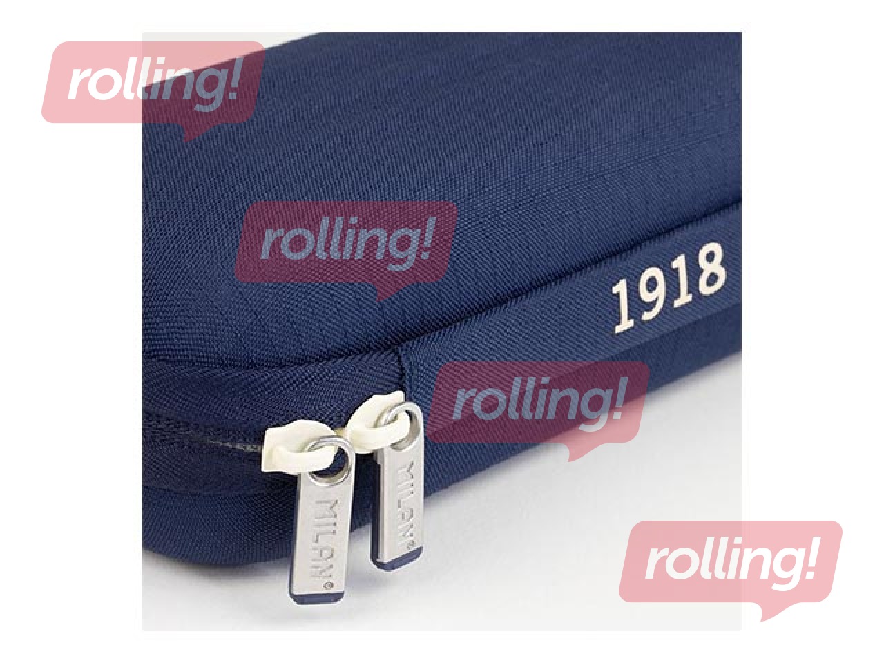 Pooljäik ovaalne pinal, mis pakub suurepärast kaitset. 1918 seeria, tumesinine värv. Inspireeritud MILAN kustutuskummide originaalsetest värvidest ja disainist. Ideaalne prillide, juhtmete või elektrooniliste tarvikute kandmiseks. Kanga koostis: polüester ja E.V.A. pealisriie, polüestrist sisevooder. Mõõdud: 20 x 9 x 6,7 cm.