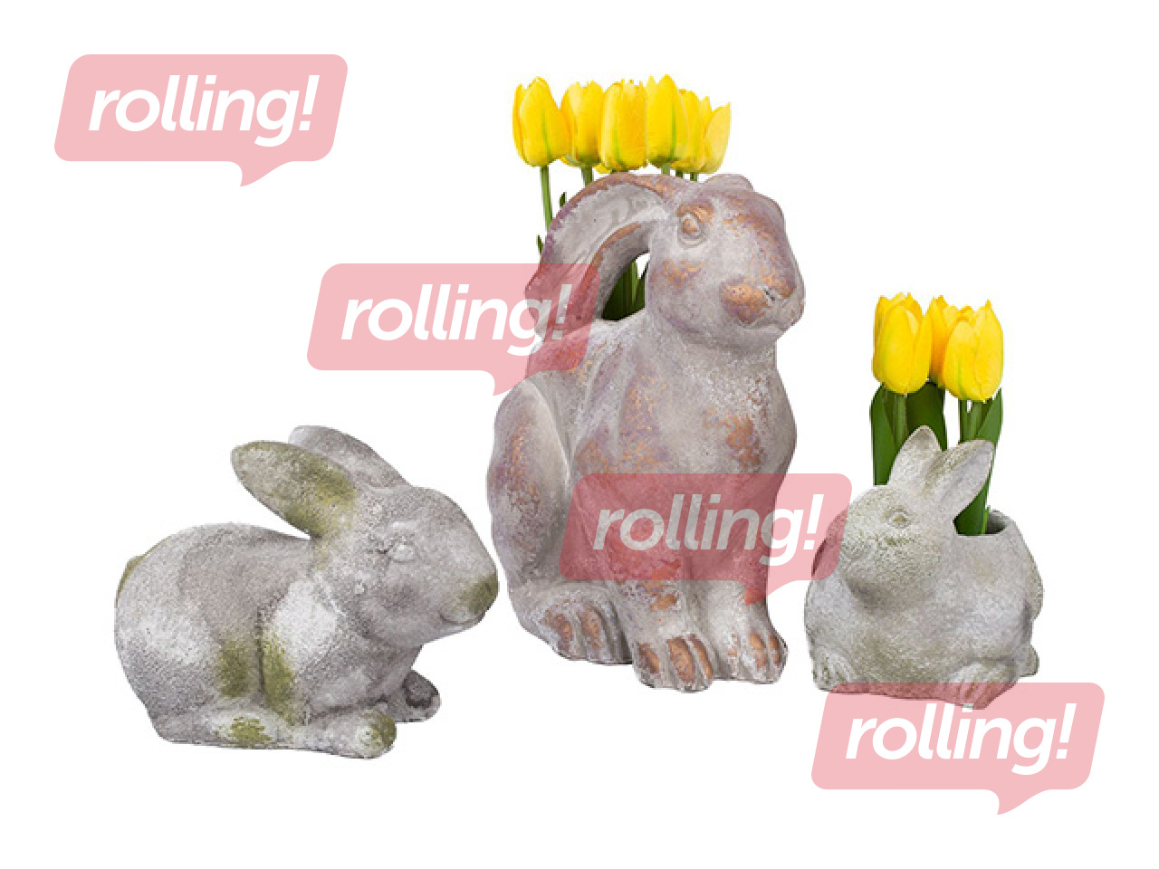 Dekoratiivne lillepott Stone jänes, betoonist, hall, 18×13×14.5cm Võrdle