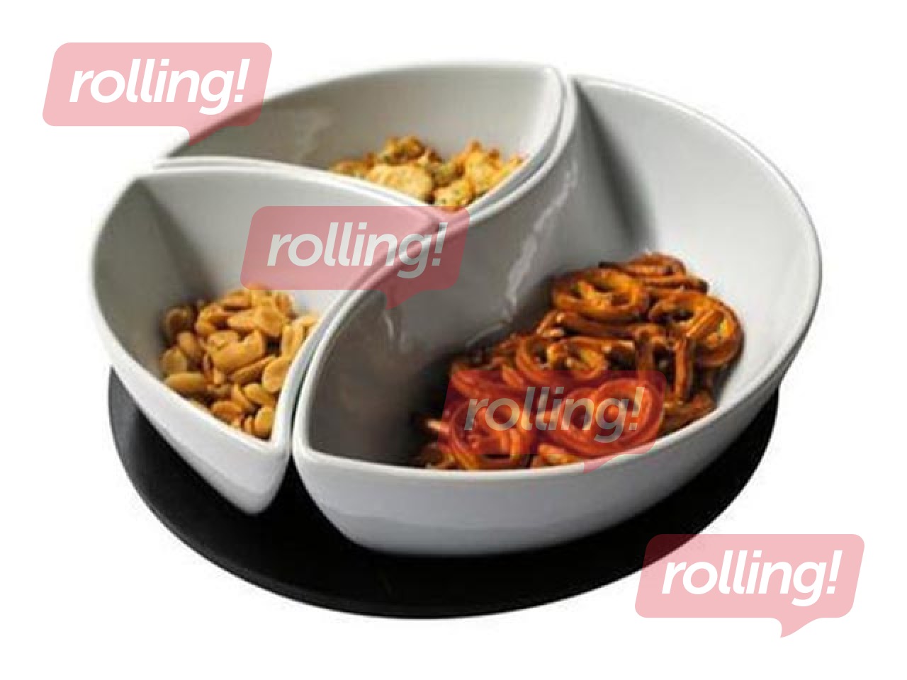 Kolmeosaline serveerimisnõu üldsuurusega Ø24x7.5cm.