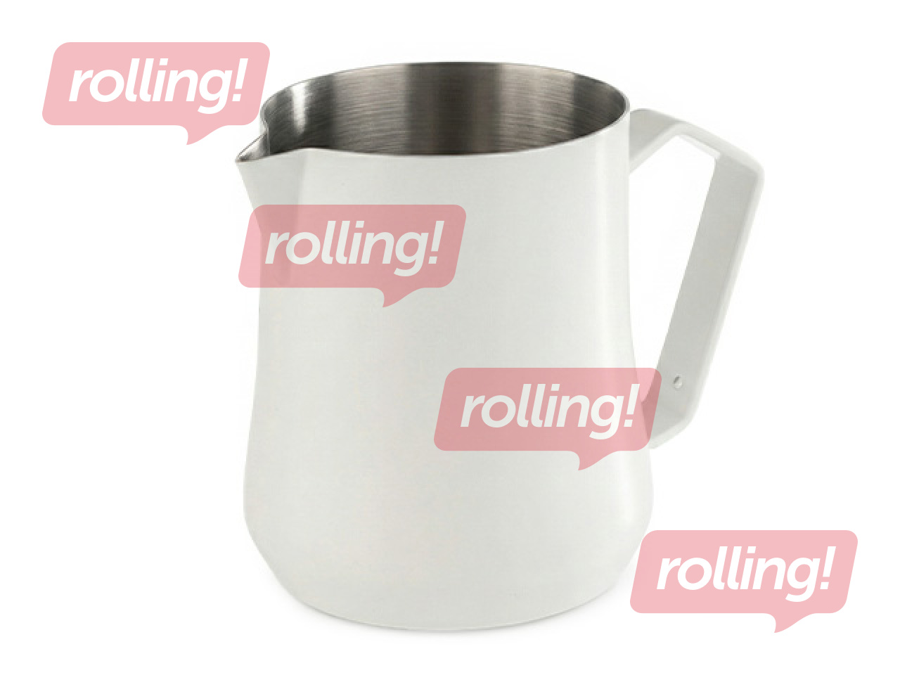 Roostevabast terasest kann valge pulbervärvkattega välispinnal ja mati viimistlusega sisemuses, mahutavus 0.35l. Erksavärviline viimistlus aitab piima veest eristada, kuid sobib ka vee ja muude jookide serveerimiseks.