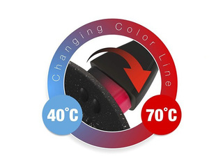 Indikaator muudab värvi järk-järgult mustast erkpunaseks. Värvimuutus algab temperatuuril 40°C ning erkpunane värvus näitab, et pann on kuumenenud 70°C-ni ja on valmis küpsetamiseks.