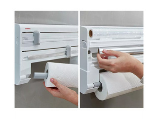 Seinale kinnitatav köögirullide hoidik paberist käterätikutele, fooliumile ja toidukilele. Ühe lehega saab kõik tehtud — fooliumi otsad on alati käepärast ning ribad lõigatakse lihtsalt ja puhtalt. Rullide vahetamine toimub ühe käeliigutusega. Lihtne seinakinnitus kahe kruviga tagab praktilise ja ruumisäästliku lahenduse igapäevaseks kasutamiseks.