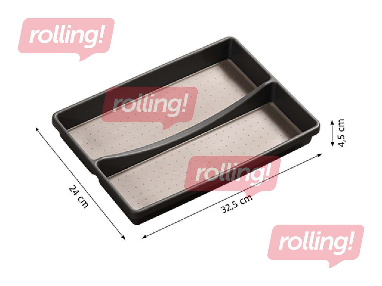 Praktiline must "Kesper" söögiriistade organiseerija (32,5 x 23 x 4,5 cm). See sobib suurepäraselt söögiriistade ja muude köögitarvikute mugavaks sorteerimiseks, aidates hoida ideaalset korda köögisahtlites.