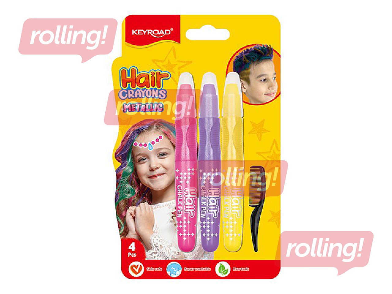 Metallik juuksekriidid roosas, lillakas ja kollases värvitoonis.