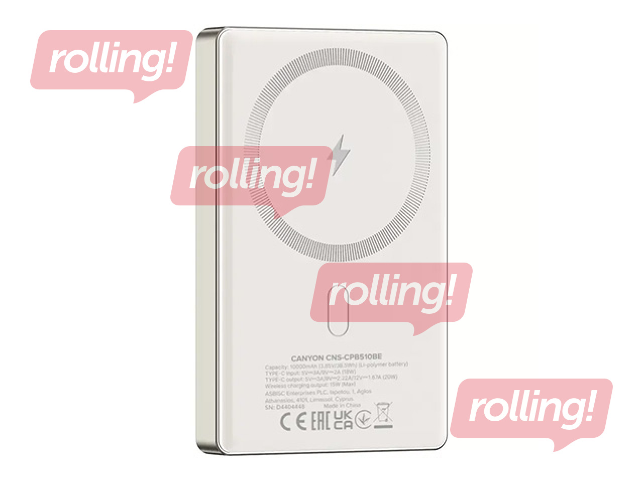 Magnetiline mobiililaadija Canyon OnPower 510 slim MagSafe PD 20W, 10000mAh, beež Võrdle