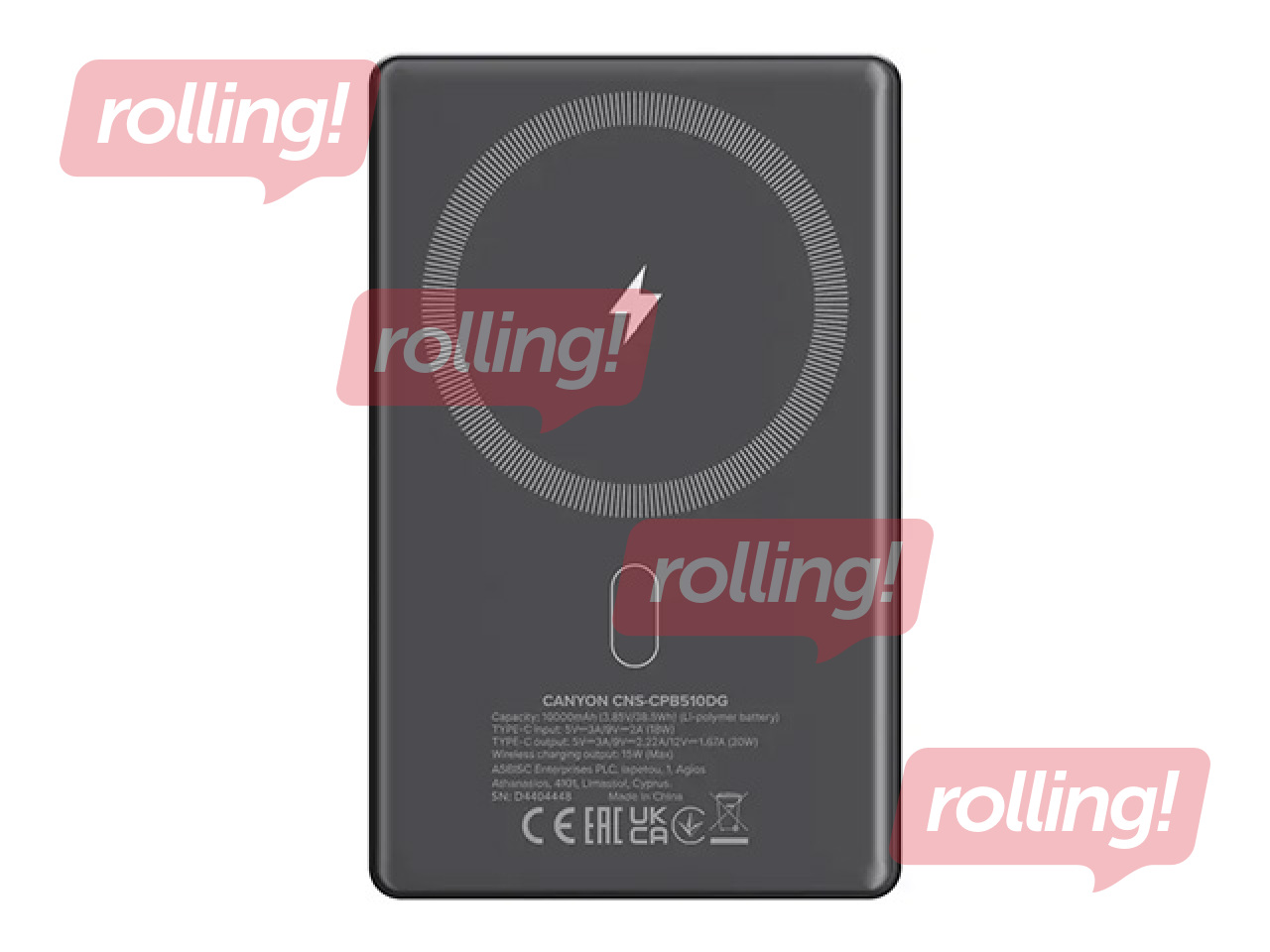Magnetiline mobiililaadija Canyon OnPower 510 slim MagSafe PD 20W, 10000mAh, tumehall
