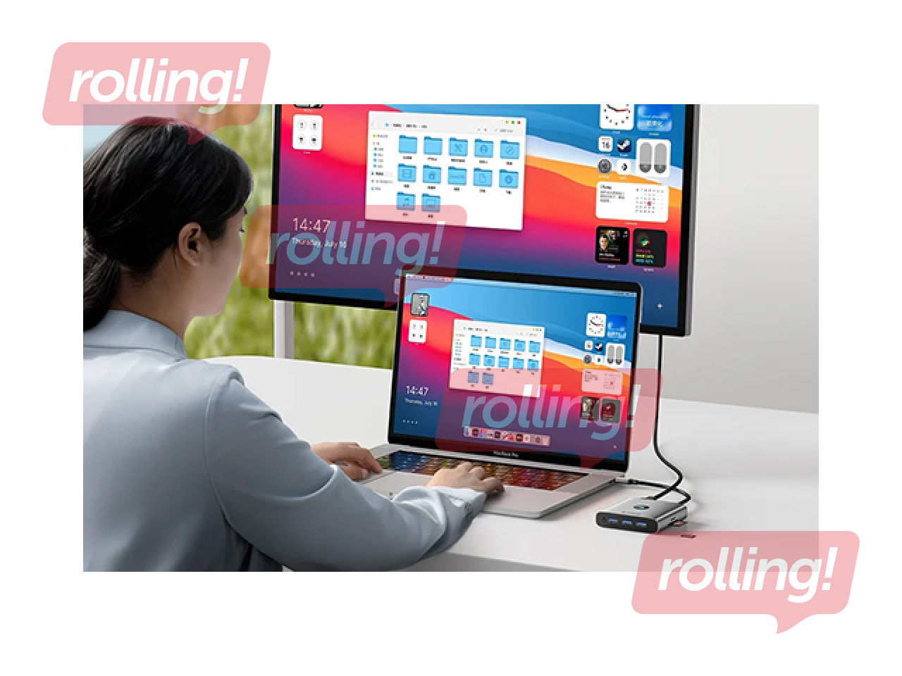 Orico 6-in-1 adapter on ühilduv paljude seadmetega, nagu hiired, klaviatuurid, printerid, mikrofonid ja muud USB-lisaseadmed, mis muudab selle äärmiselt mitmekülgseks. Lisaks tagab see Etherneti tehnoloogia abil kiire ja stabiilse internetiühenduse ning toetab SD- ja TF-kaartide lugemist. Suurema ekraani jagamise võimega aitab adapter suurendada töö efektiivsust, muutes selle produktiivsemaks ja mugavamaks.