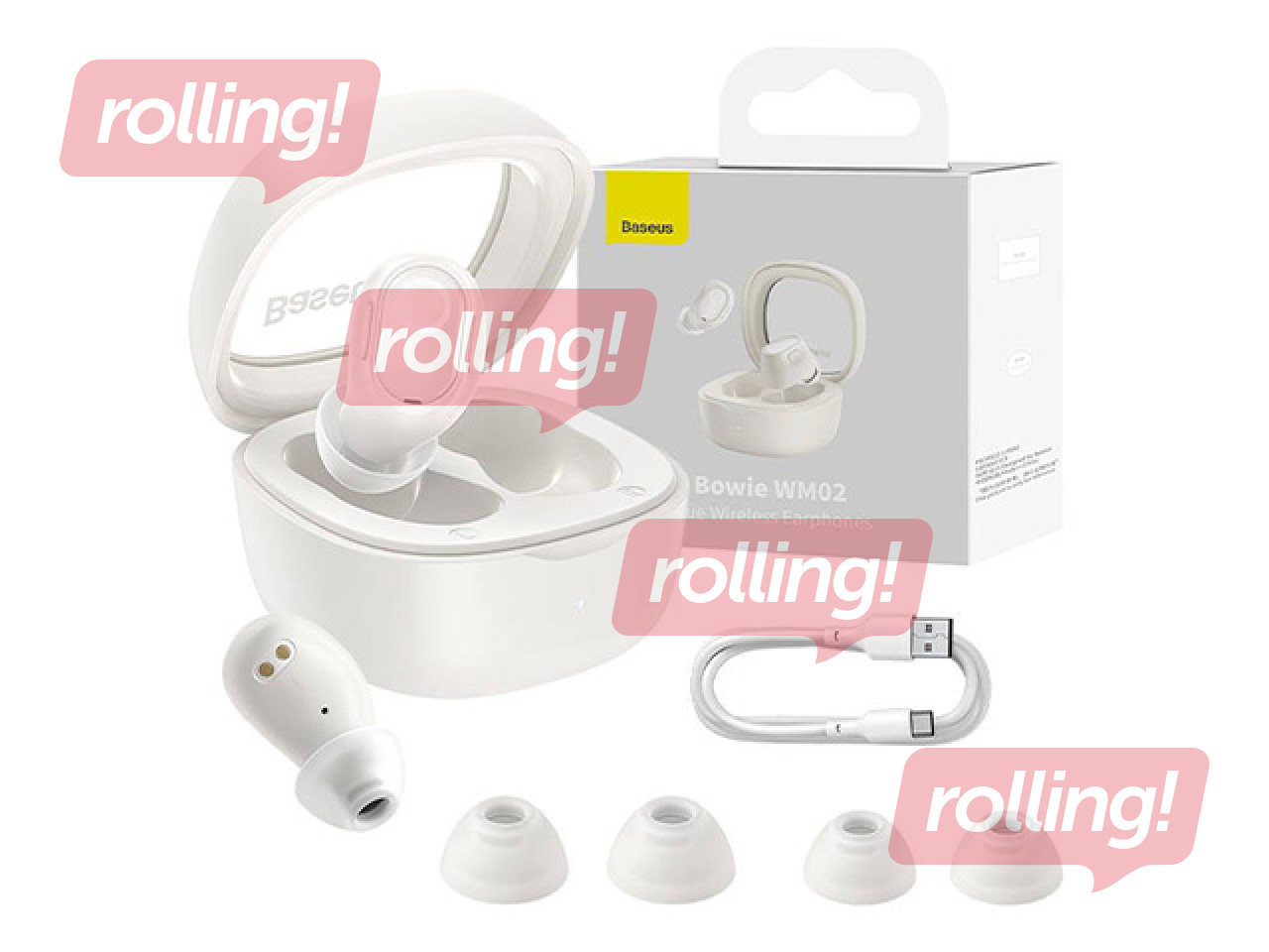 Baseus Bowie WM02 TWS juhtmeta kõrvaklapid, Bluetooth 5.0 (valge)